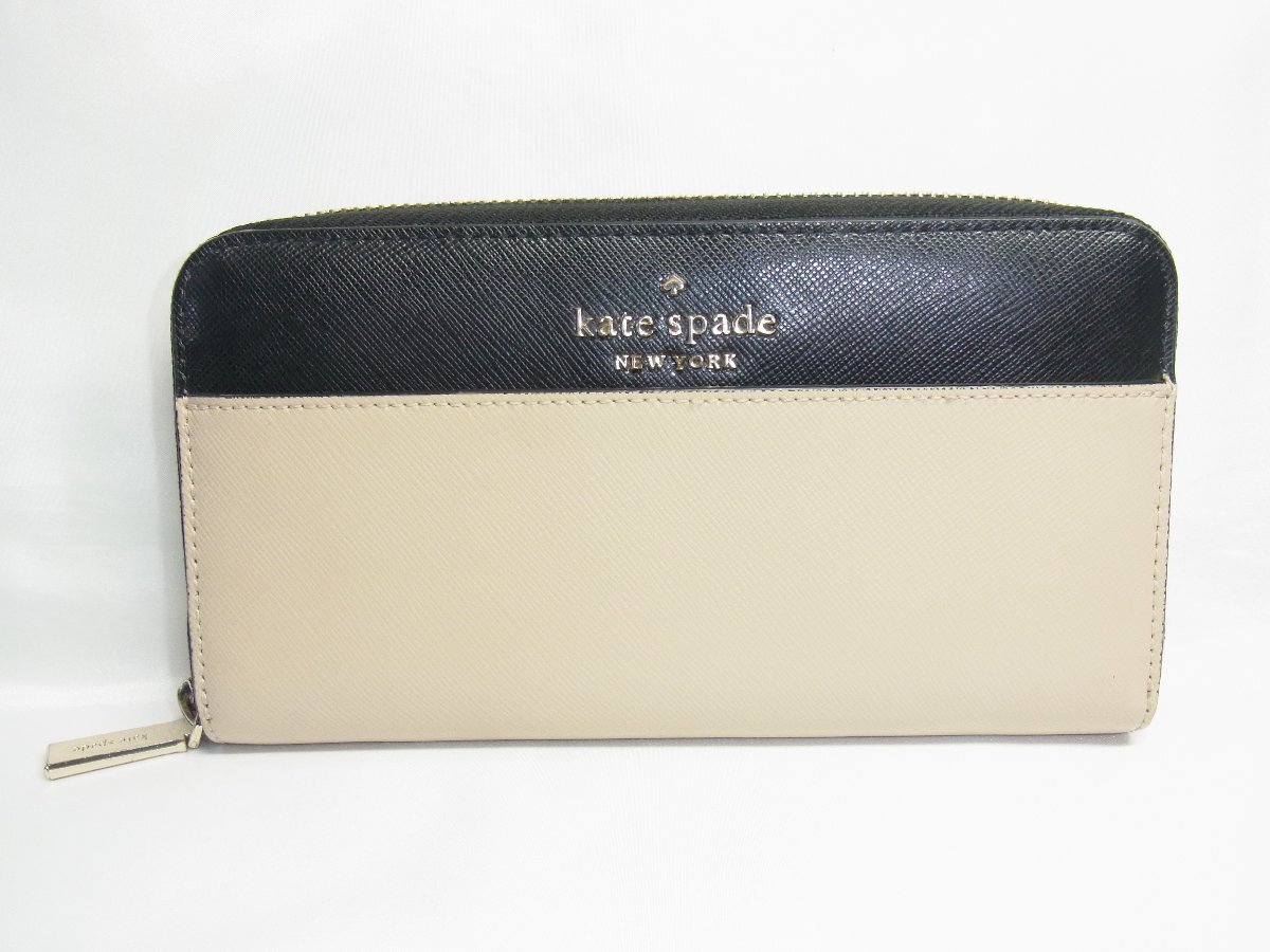 | ケイトスペード Katespade 財布 ロング ラウンドファスナー バイカラー ブラックxベージュ PVCレザー 中古美品 | |