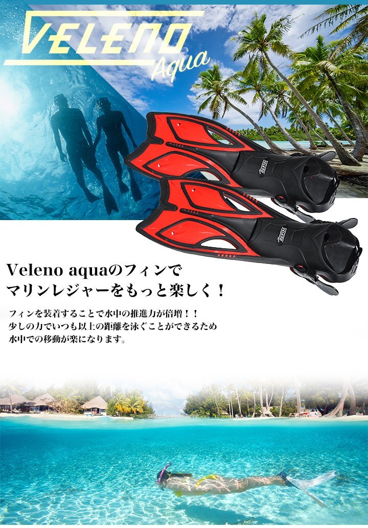 veleno aqua シュノーケル ダイビング ストラップ フィン レッド Lサイズ 足ひれ 遠くへ早く シュノーケリング シリコン製 送料無料