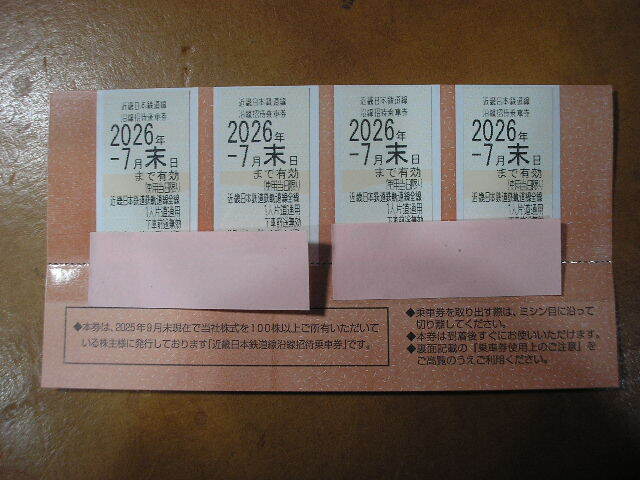 近鉄 株主優待券 沿線招待乗車券 2026年7月末日迄 近畿日本鉄道線 4枚セット 最新