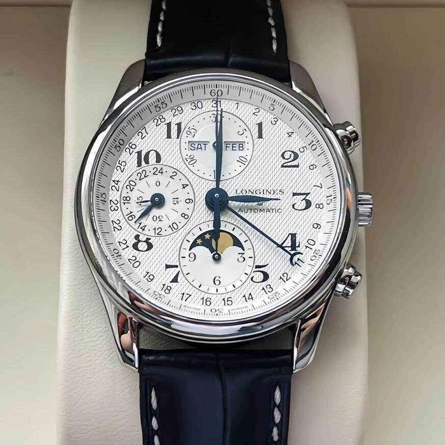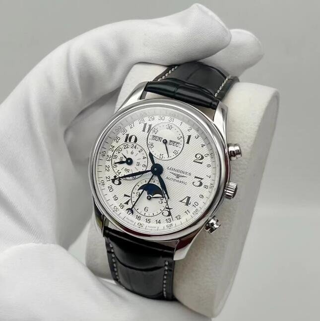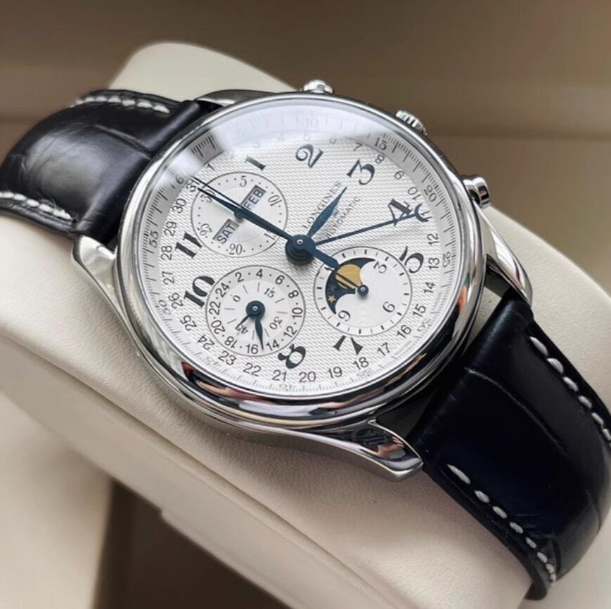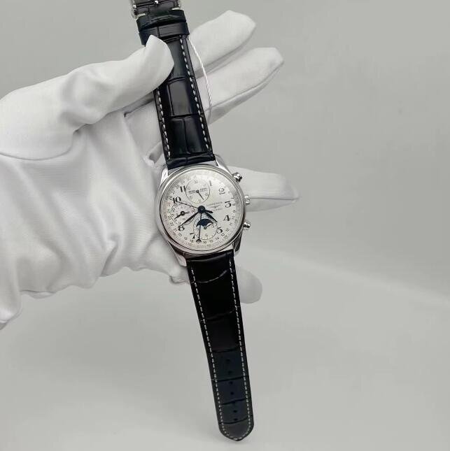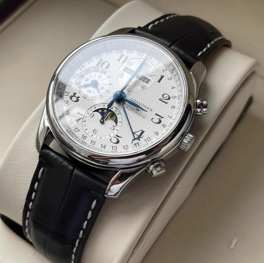 LONGINES ロンジン マスターコレクション クロノグラフ ムーンフェイズ 黒ベルト 自動巻き 腕時計 40mm シルバー文字盤 L2.673.4.78.3
