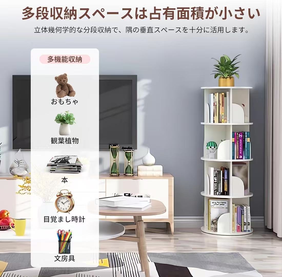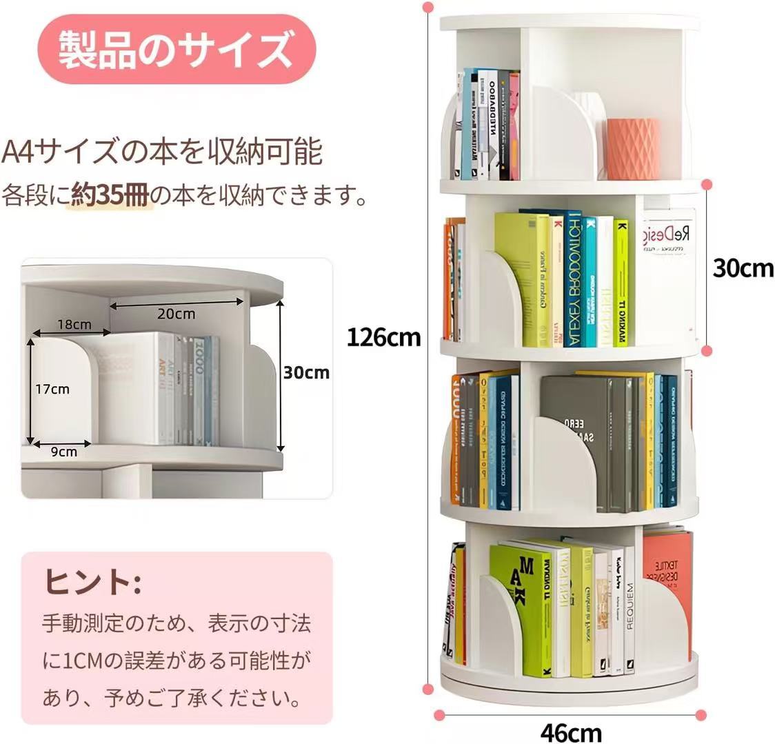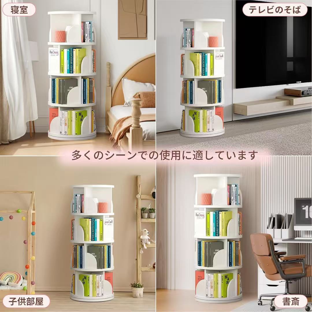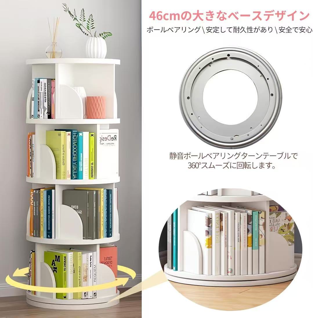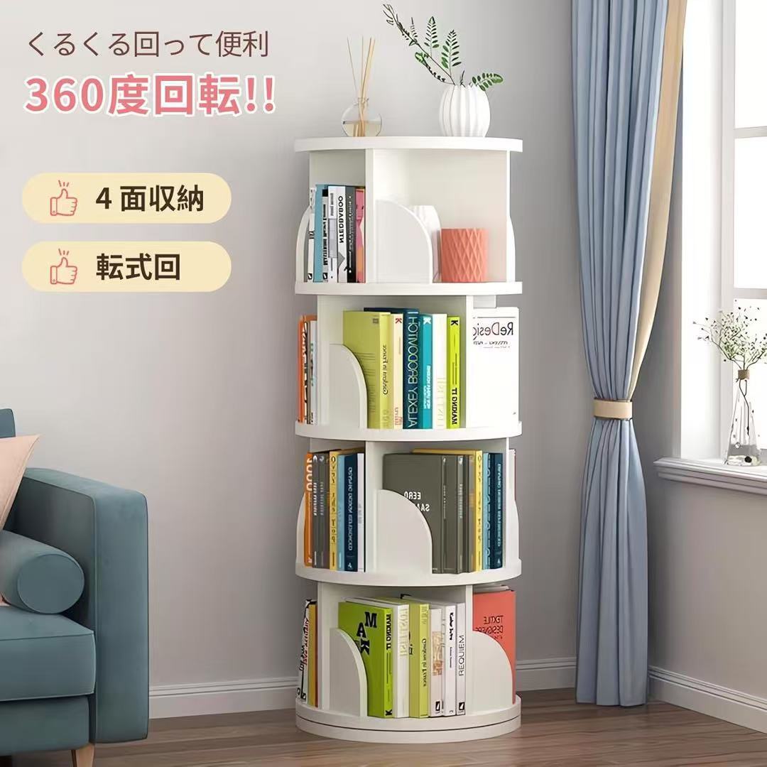 訳あり品 本棚 回転式本棚 4段 大容量 直径46CM 漫画絵本棚 タワーラック 隙間収納 文庫本 ブックシェルフ 収納棚 省スペース CD/DVDラック