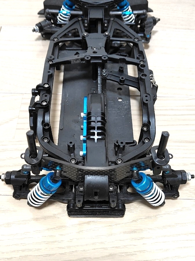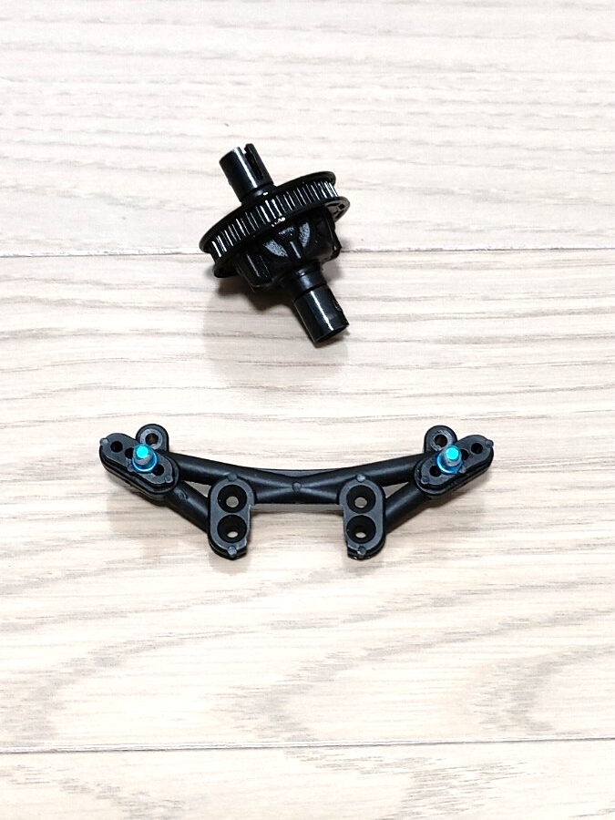 リヤダンパーステイはワイドカーボンに変更してあります。またフロントスプールデフにかえてあります。(いずれもノーマルパーツはあります)