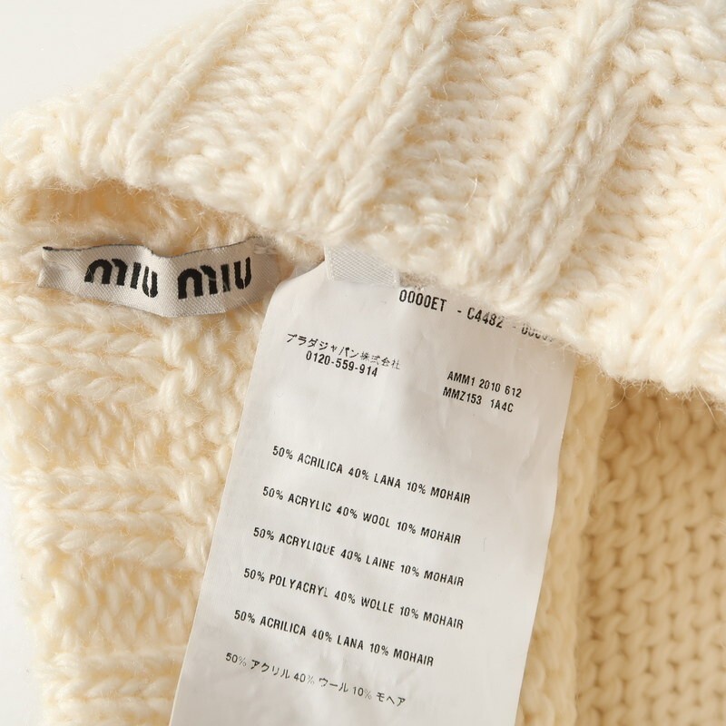 | MI4289*イタリア製 miumiu ミュウミュウ ニット帽 ビーニー ニットキャップ 帽子 ウール モヘア混 Size S アイボリー | |||