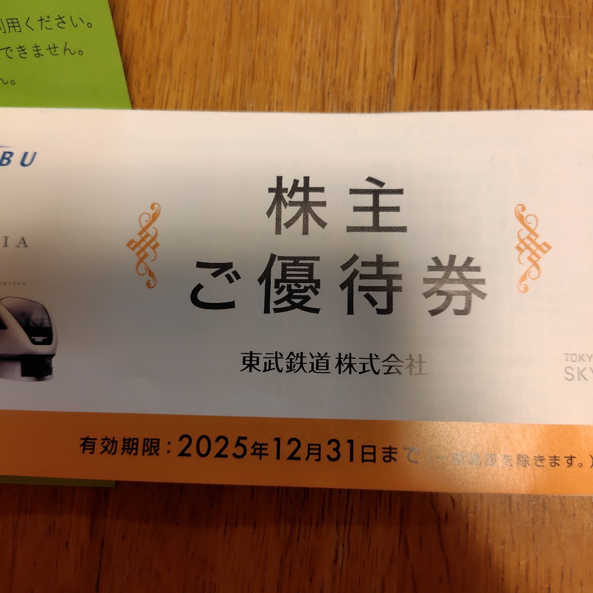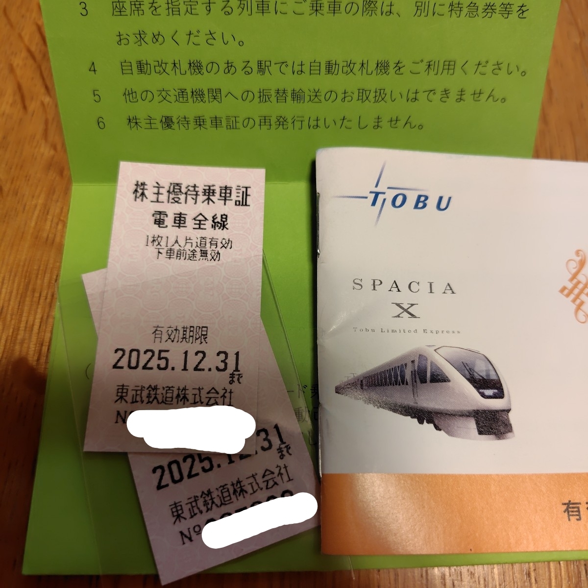 東武鉄道の株主優待乗車証2枚と株主優待券冊子一冊のセットです。