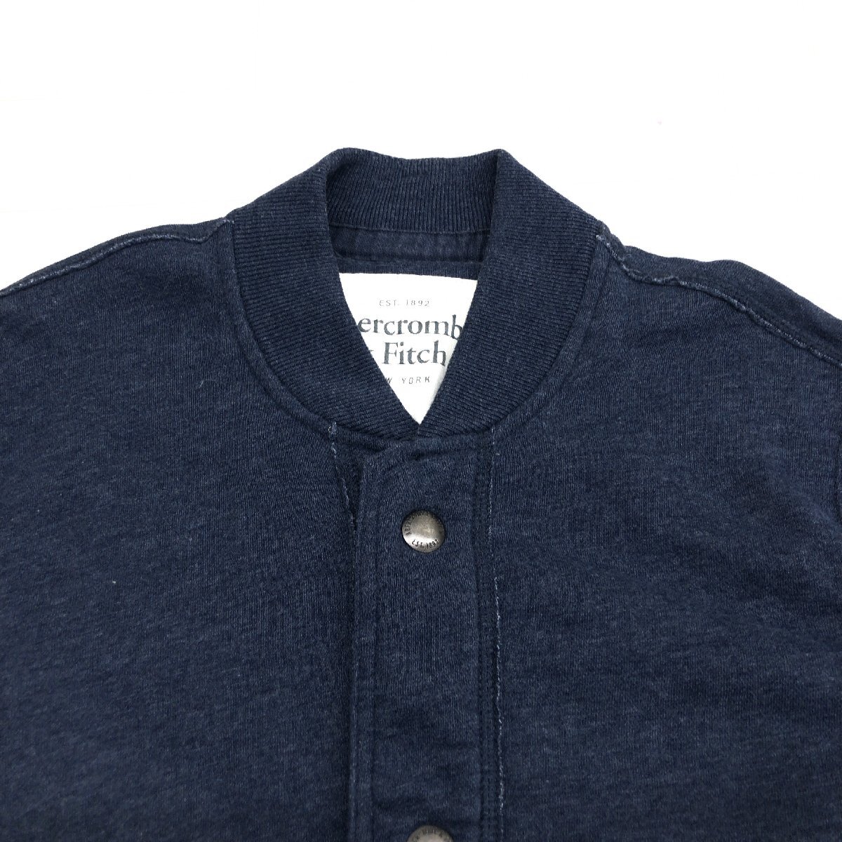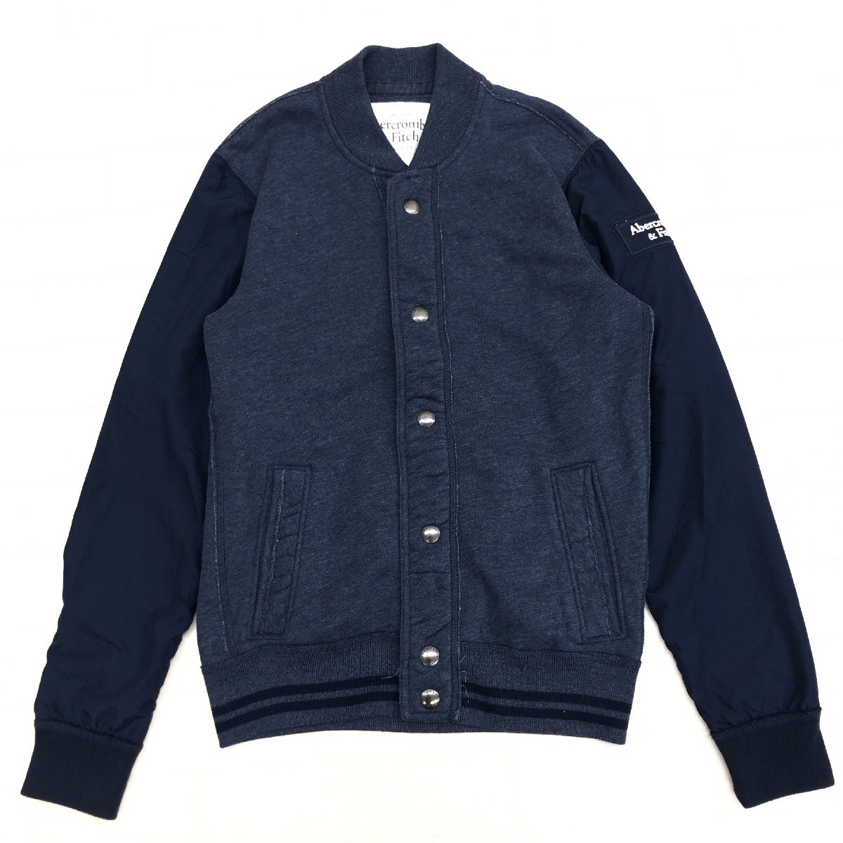 ●Abercrombie&Fitch アバクロンビー&フィッチ USED加工 生地切替 スウェット スタジャン S ネイビー ジャケット ブルゾン アメカジ メンズ