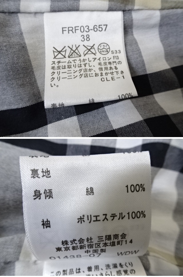 肩幅35cm 袖丈61cm 脇下身幅46cm 着丈89.5cm