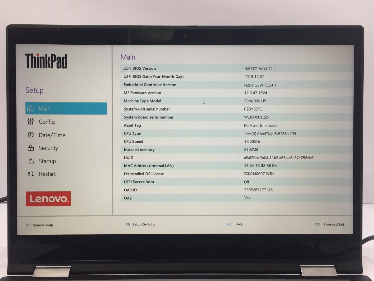 ジャンク/ LENOVO 20NN0001JP ThinkPad X390 Yoga Intel Core i5-8265U メモリ8.19GB NVME256.06GB 【K25508】
