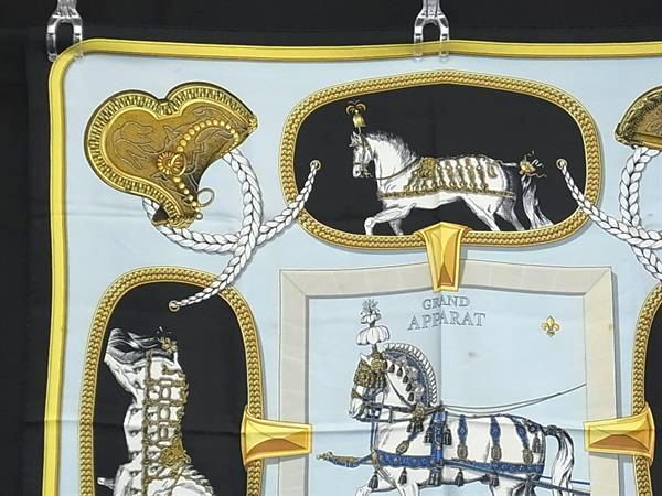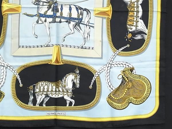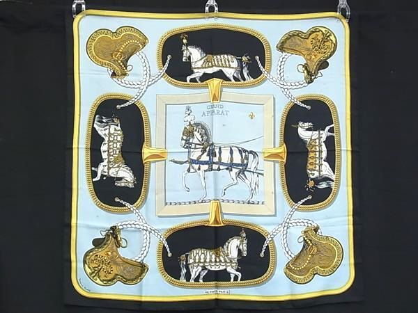 1円 HERMES エルメス GRAND APPARAT 【盛装の馬】 カレ90 大判 スカーフ ストール ショール ライトブルー系×マルチカラー BT0437