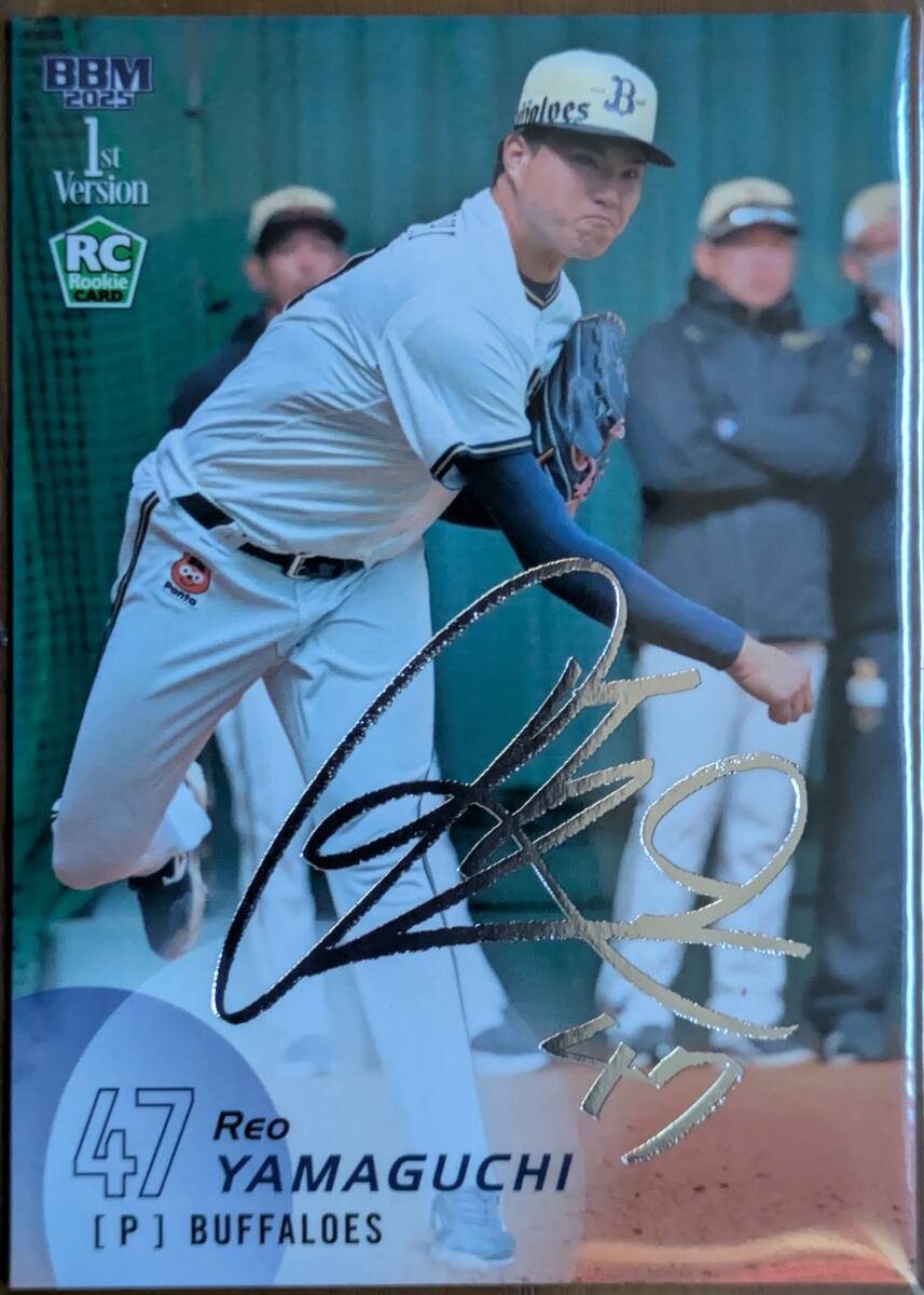 山口廉王選手(オリックス・バファローズ)の銀箔サインパラレルルーキーカードです。