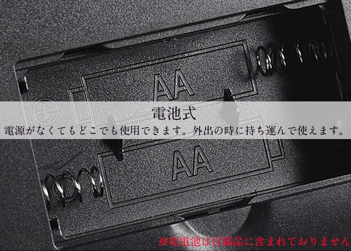 【電池式】自宅など固定場所と移動先で電源がない場所も自由に使えます。