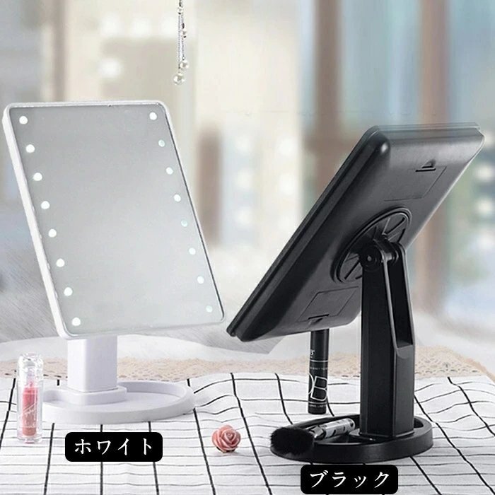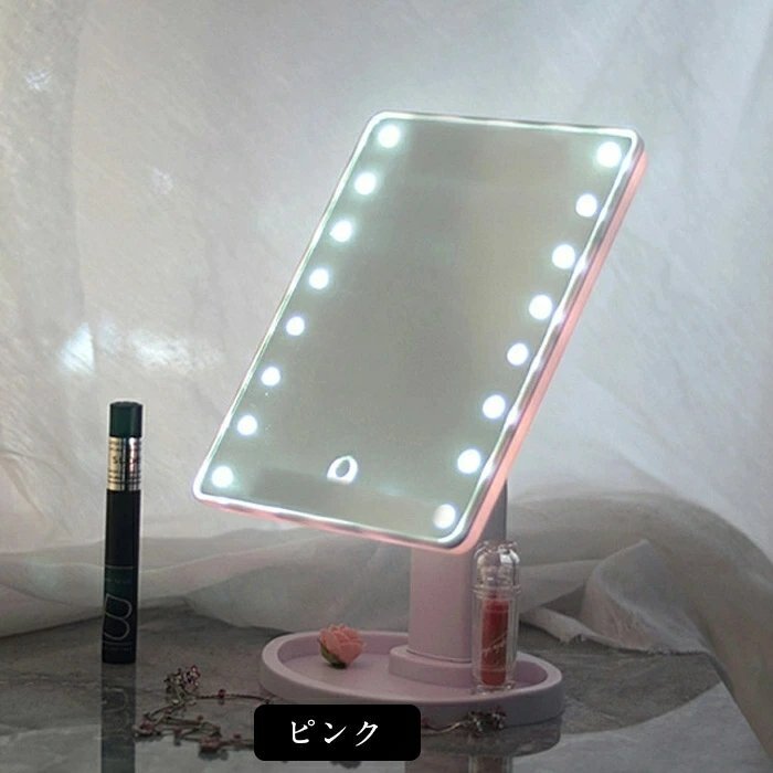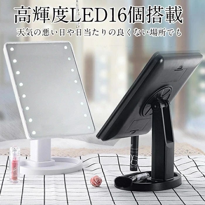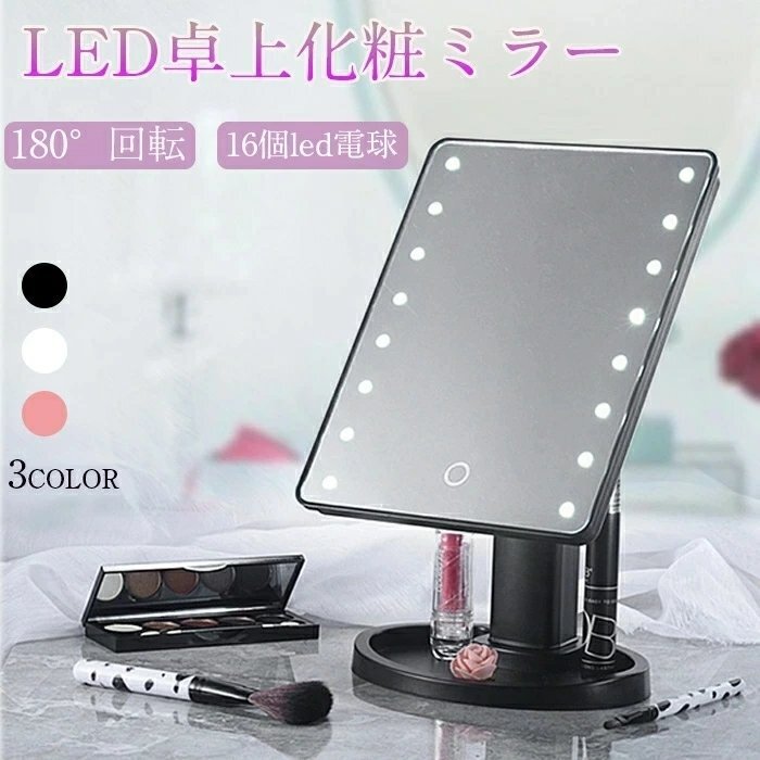 卓上ミラー 鏡 LED 化粧鏡 卓上ミラー LEDライト16個 卓上 LEDライト 180°回転 角度自由調整 電池式 ☆カラー/3色選択/1点