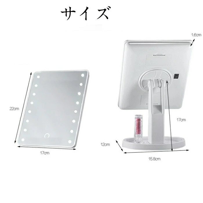 【LEDライト付き】内蔵の16個のLEDライトは、暗い場所や弱い光の場所での使用に非常に役立ちます。LEDラ イトが均等に顔を照らし、影をなくし、化粧ムラ防止になります。暗い部屋でも細かいところまで映ります。 LEDライトもスペース照明と非常照明の両方として使用できます。