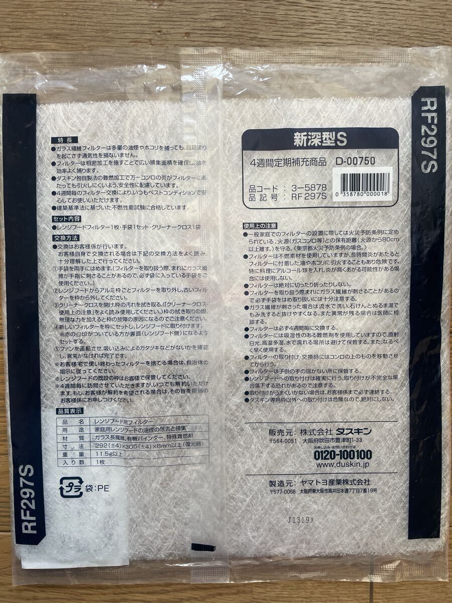 ダスキン レンジフードフィルター RF297S 3枚セット