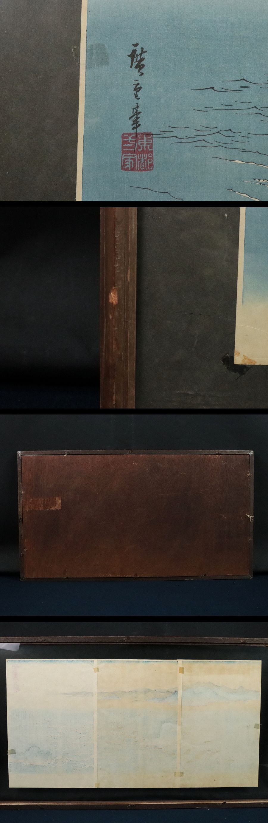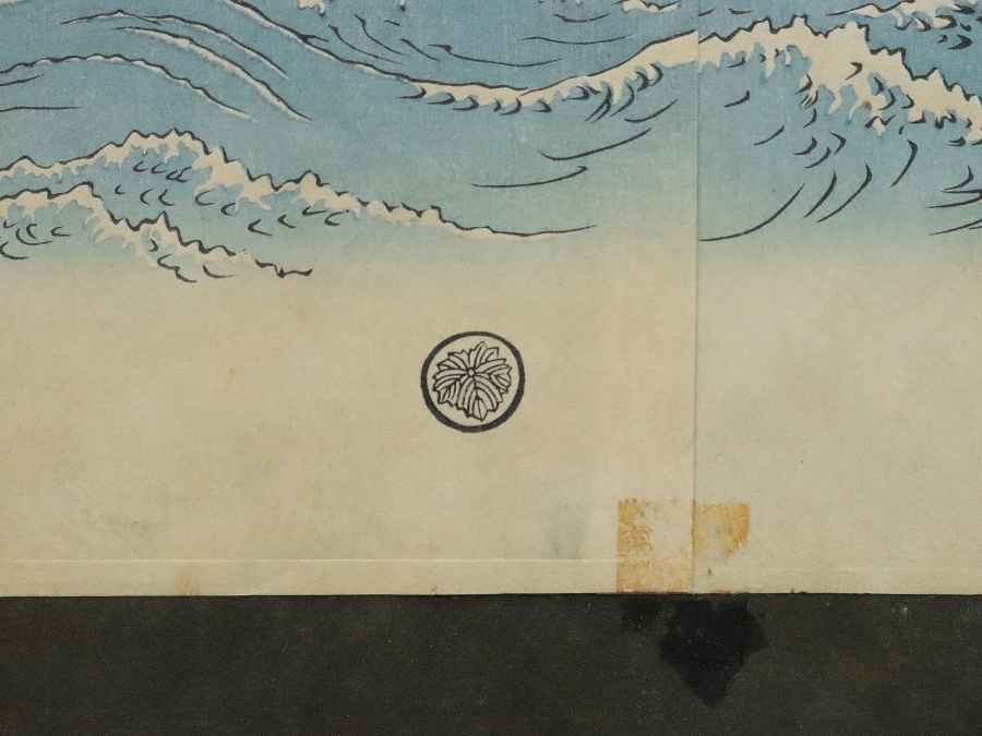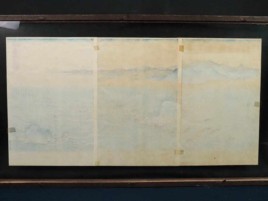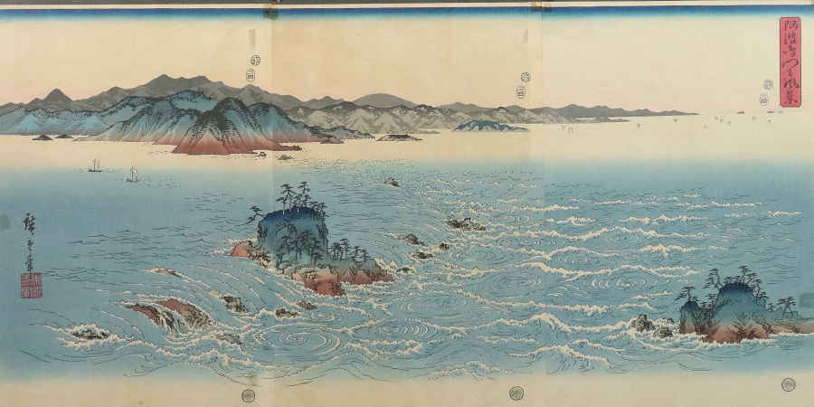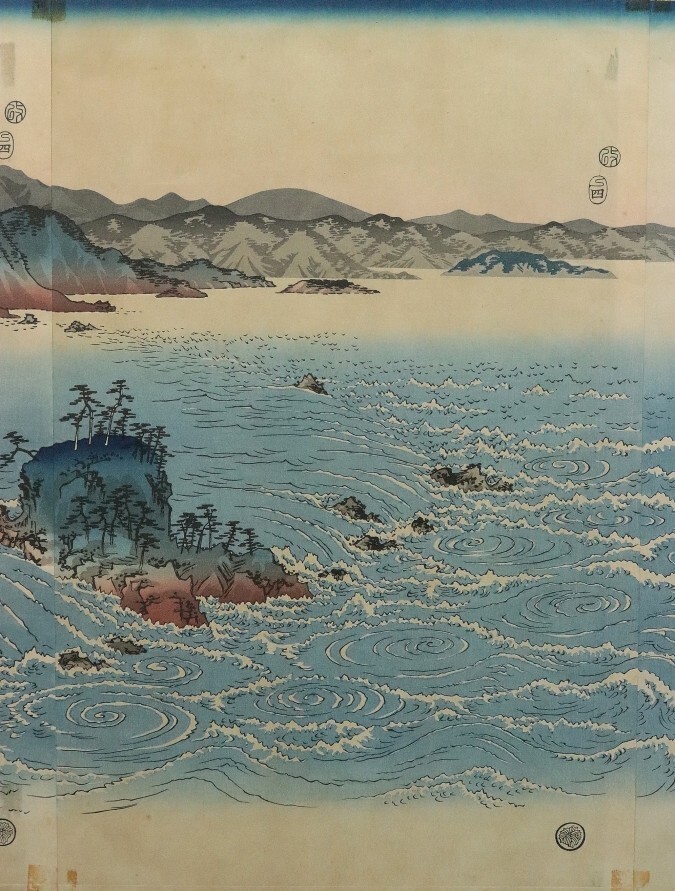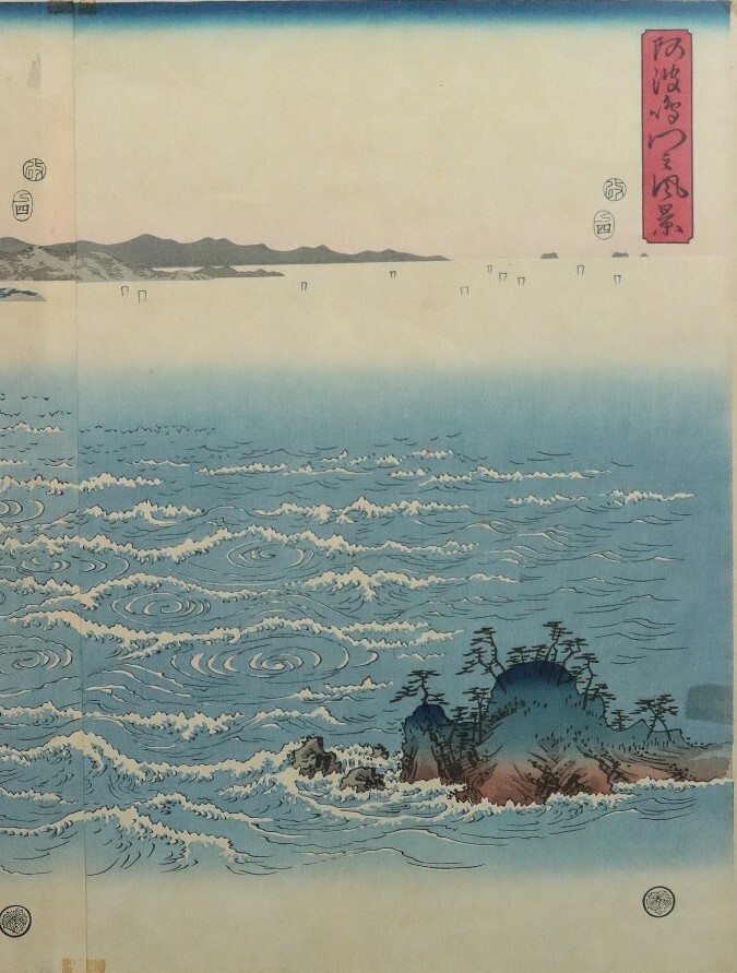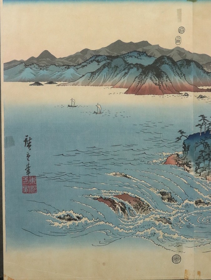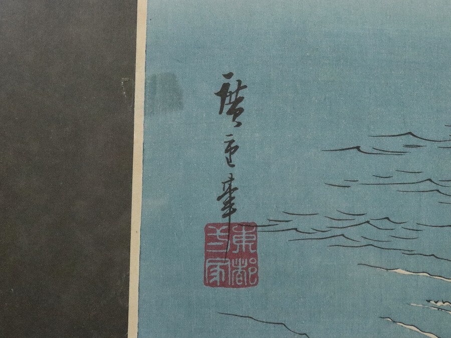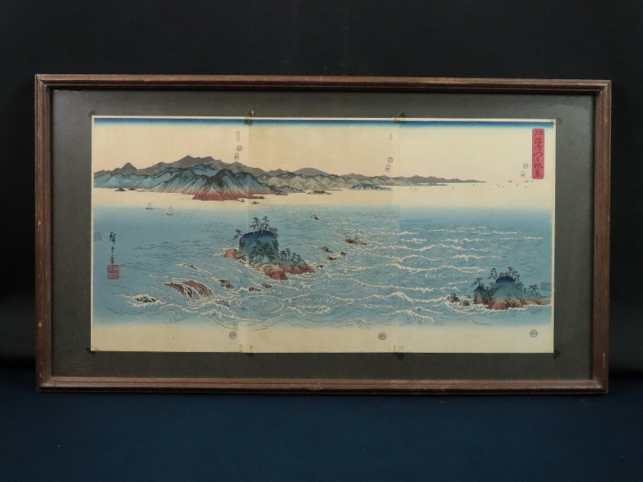 11990■【真作】歌川広重 「阿波鳴門之風景」木版 雪月花三部作 浮世絵師 江戸時代 藤広重 額装
