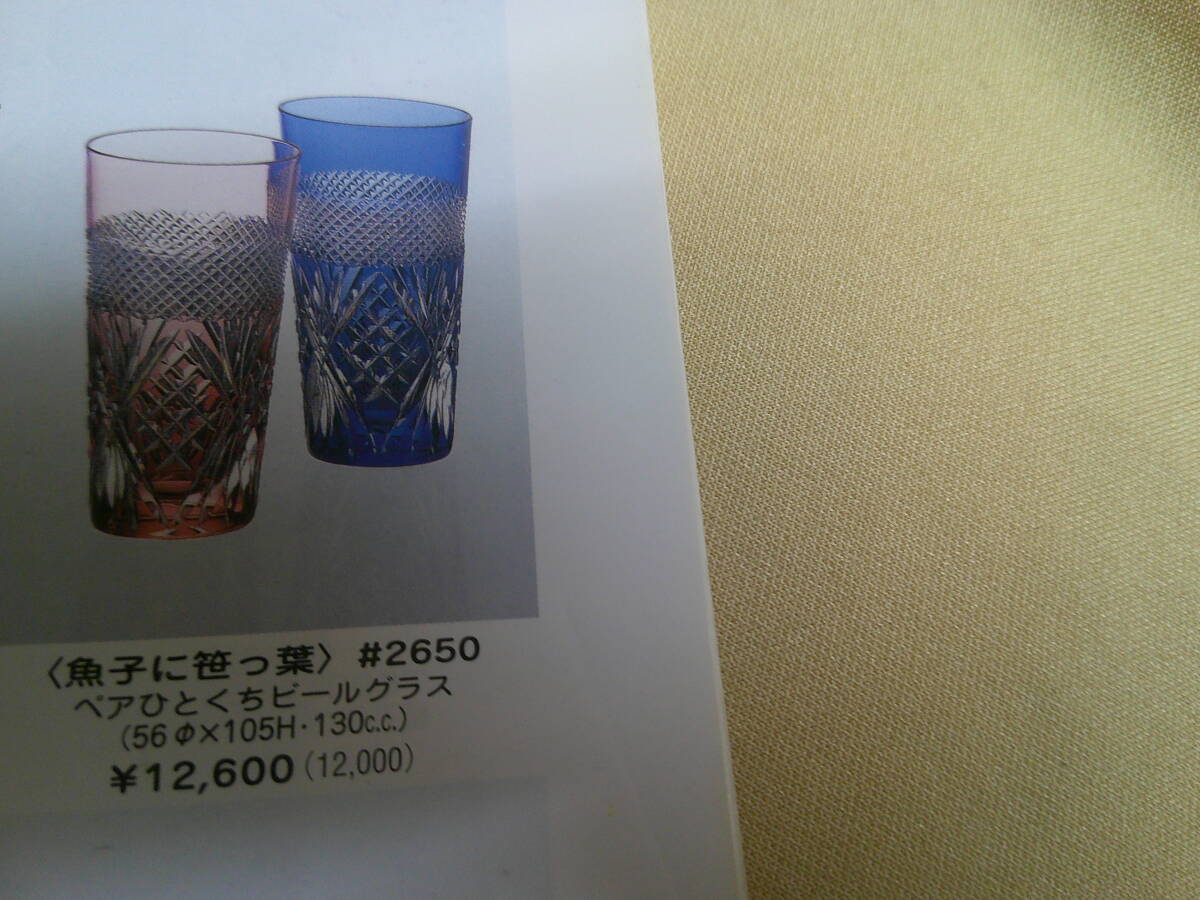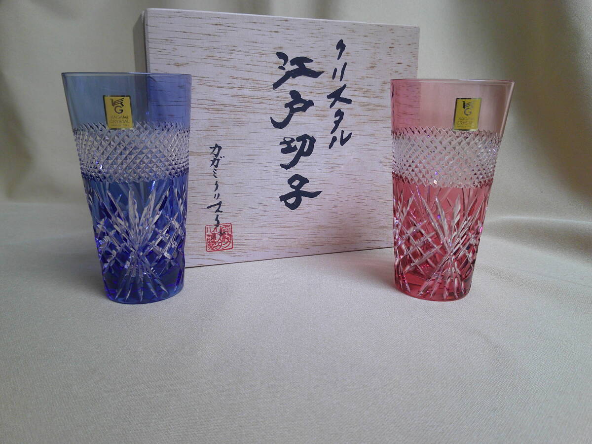 カガミクリスタルの一口ビアグラス・ペア、江戸切子です。3枚目写真は2006年カガミクリスタルカタログです。 < 税込み送料 佐川宅配便扱い > 関東・東北・信越・北陸・東海・近畿580円 四国・中国750円 九州・北海道880円/沖縄・離島の方はゆうパック着払いになります。離島の方はお住まいの都道府県と離島とお知らせ下さい。どうぞ、よろしくお願い致します。 ----------- ☆ ☆ ------------------------ ☆☆☆ とても切なるお願い ☆☆☆ ボランティア支援の一環として、宅配便送料の一部は出品側で負担しています。主な出品は日用品です。テーブルウエアをお求めの方は自己紹介をご一読の上、ご検討下さいますようお願い申し上げます。 1 宅配業者・方法は当方指定だけでご了承下さい{着払い代引等も非対応です}。2 落札後のお問い合わせやご要望等{着荷時間帯のご指定を除き}には、お応えできかねますのでご質問欄からお願い致します。 3 まとめて取引における宅配送料は200~500円加算を目安にされて下さい{定形外やレターパックライトといった宅配以外との同梱は別途料金となります}。4 お取り置きや領収証の発行は承れません。5 発送は月・水・金曜の週3日間になります。商品到着をお急ぎの方や直近着荷のご指定はご遠慮下さい。尚、割れ物は「宅配業者の破損なき梱包基準」をクリアした荷造りしてお届け致します。 ☆☆
