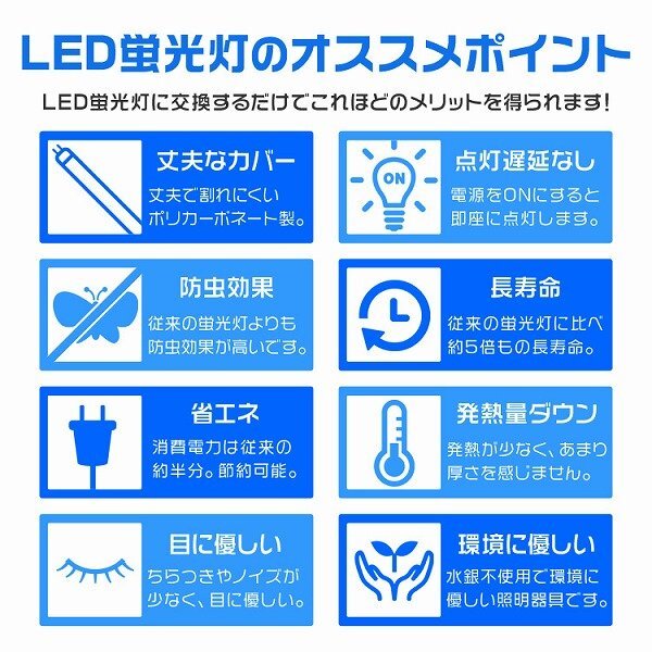 高性能高輝度LED(SMD)を使用!驚異的な明るさを実現! 20W形 直管LED蛍光灯です。 従来のLED蛍光灯よりも明るい! 従来蛍光灯に比べ、約60%消費電力削減! 工事無しで簡単取り付け可能! 今までネックになっていた配線工事を必要としないタイプです。 ◇当店のLED蛍光灯の特徴◇ 低消費電力、省エネで電気料金を大幅削減。 放熱部はアルミニウム合金製で、放熱性が更に向上、軽量化。 本体部はポリカーボネート樹脂+合金製で、割落・飛散しにくい。 【仕様】 電源:AC90〜120V 50/60Hz 消費電力:9W SMDタイプ:T8 色温度:6000K〜6500K 光束:850lm 使用温度条件:-20〜40度 全長:580mm 直径:約28mm 重量:120g 口金:G13 カバー:ホワイト 寿命:50,000時間 |
