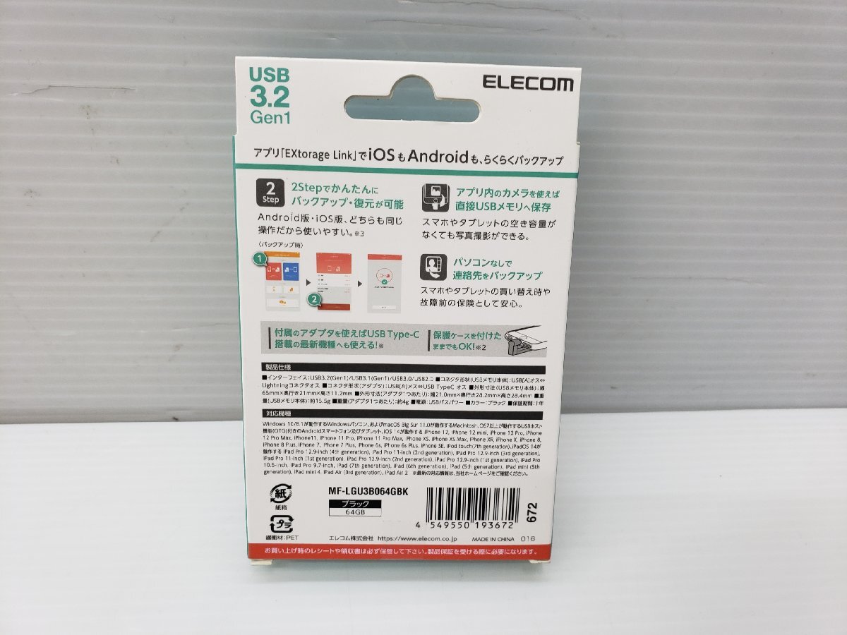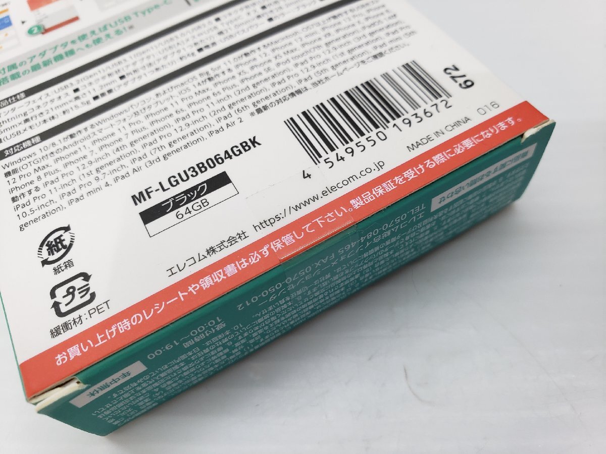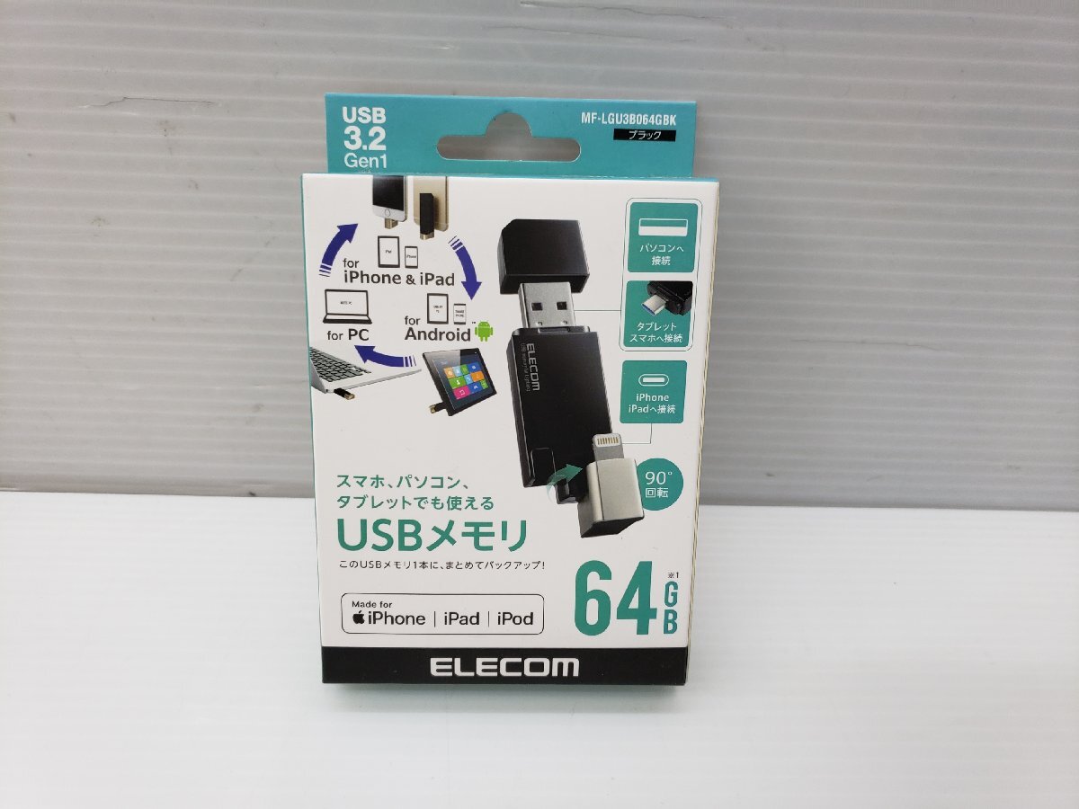 1円スタート ELECOM エレコム USBメモリ 64GB MF-LGU3B064GBK 未開封品 ◇0410 | |||||||
