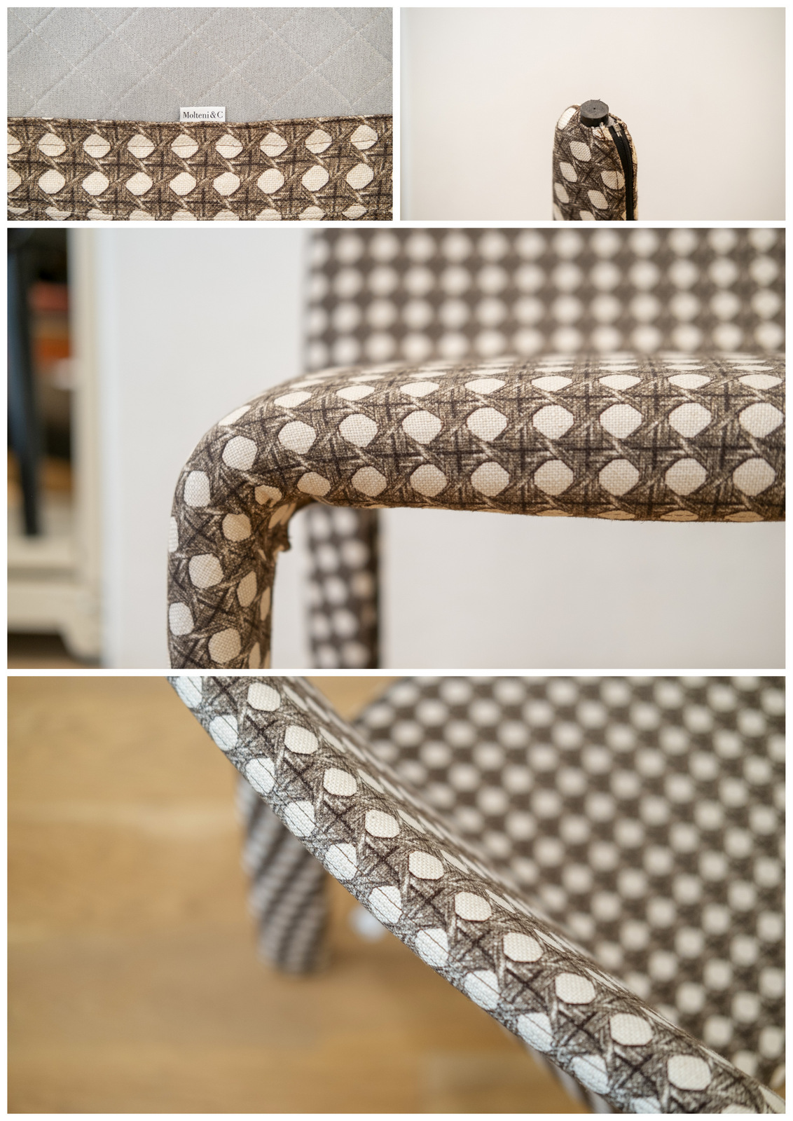 バックレストの滑らかなラインが、軽やかな印象の脚部へと続き、絶妙なバランスを生んでいます。