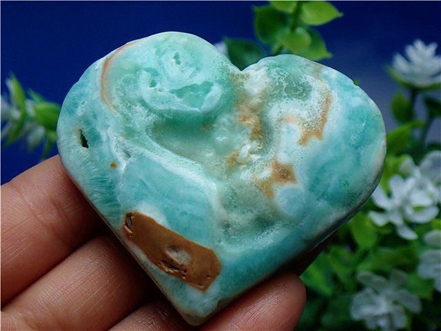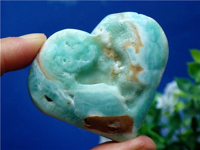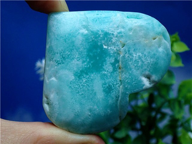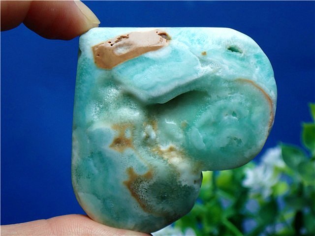 白や、灰色、褐色などの色をもった石ですが、一般的に良く見られるものは明るい空の色、南国の海の色に例えられるたいへん鮮やかなブルーが美しい石です。古くから悪霊を祓う力のある石として、珍重されてきました。