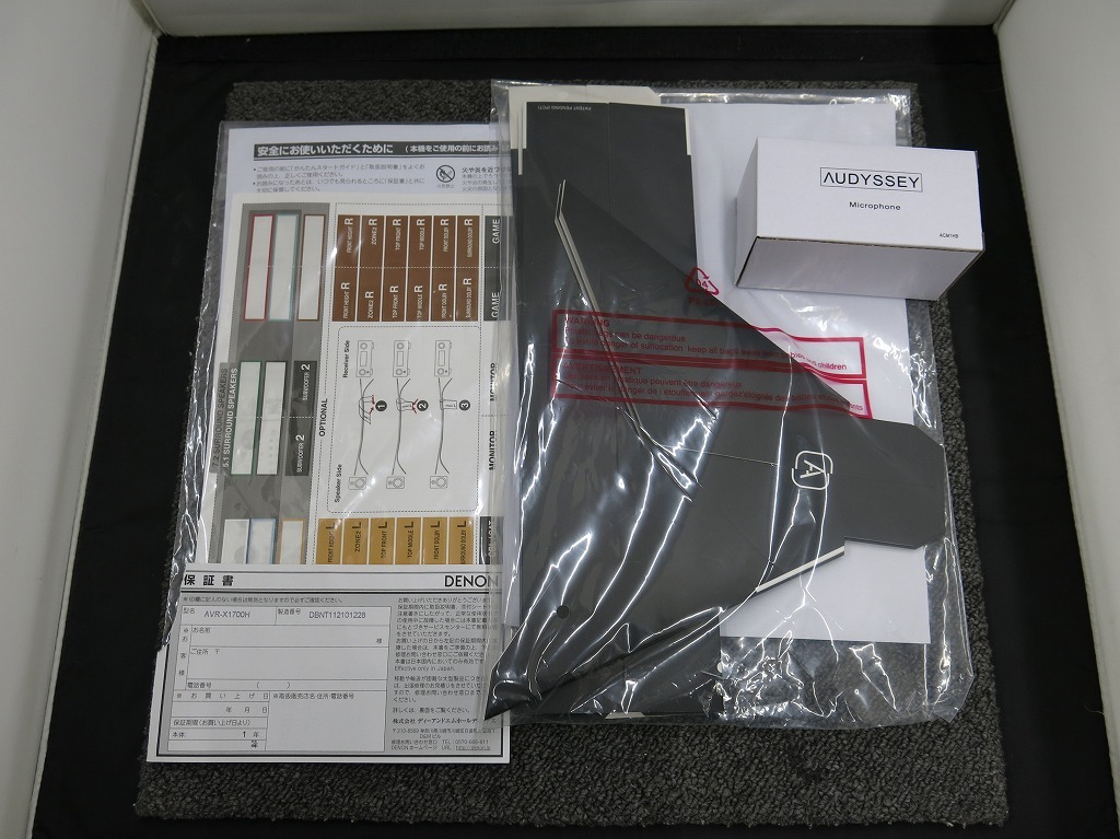 付属品元箱・取扱説明書・リモコン・FM簡易アンテナ・AMループアンテナ・セットアップマイク・セットアップマイクスタンド・ケーブルラベル