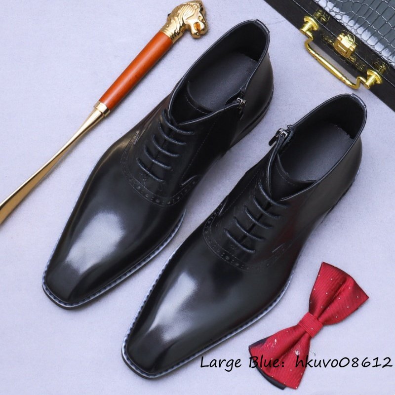 超希少*13万 マーティンブーツ レトロ ショートブーツ イギリス風 職人手作り 高級牛革 本革レザーブーツ ハイカット皮靴 ブラック 27.5cm