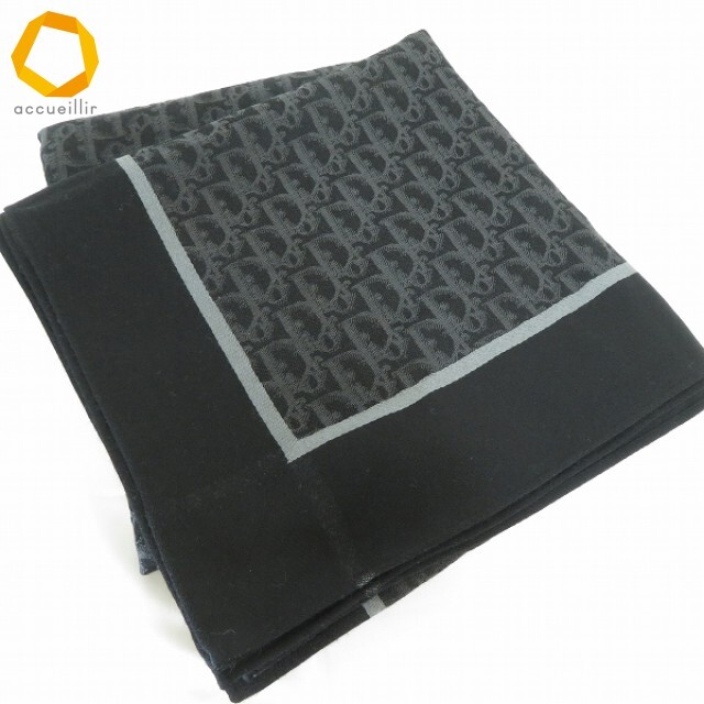 ●商品名(タイトル):#wxe クリスチャンディオール ChristianDior ストール ショール 大判 黒 グレー 総柄 トロッター ヴィンテージ レディース [957307] k01