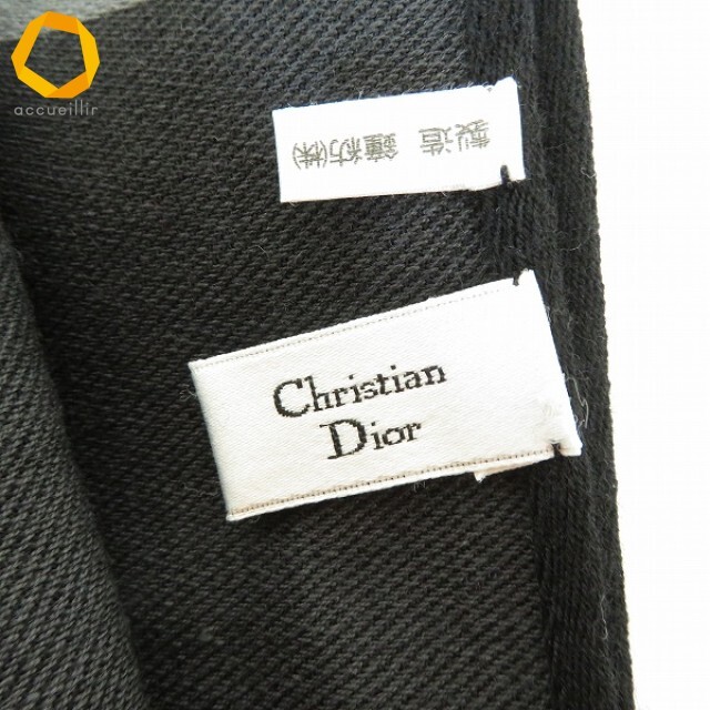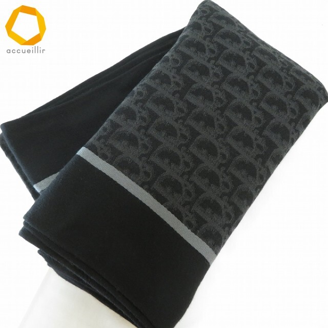#wxe クリスチャンディオール ChristianDior ストール ショール 大判 黒 グレー 総柄 トロッター ヴィンテージ レディース [957307] k01