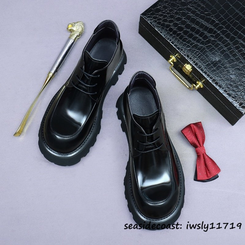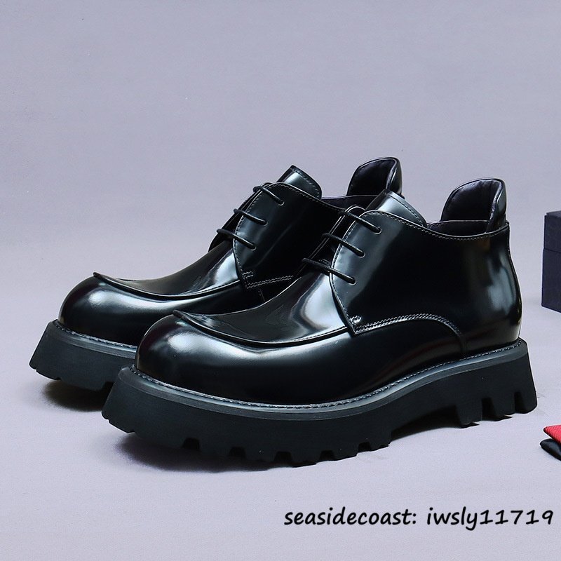 新品◆最高級 本革 レザーブーツ メンズブーツ 牛革 マーティンブーツ イギリス風 ビジネス 皮靴 バイクブーツ 厚底 紳士 ブラック 27.5cm