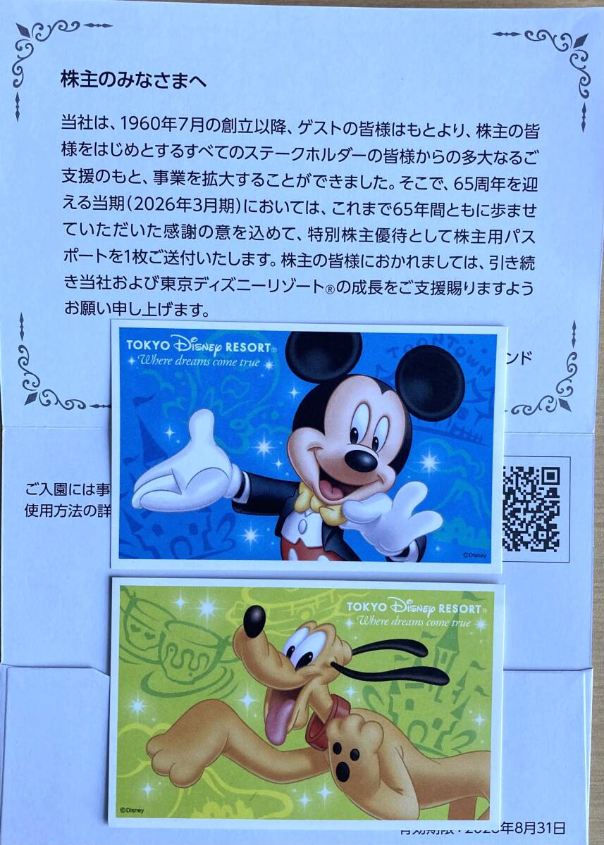 東京ディズニーリゾート共通券 株主用パスポート 2枚