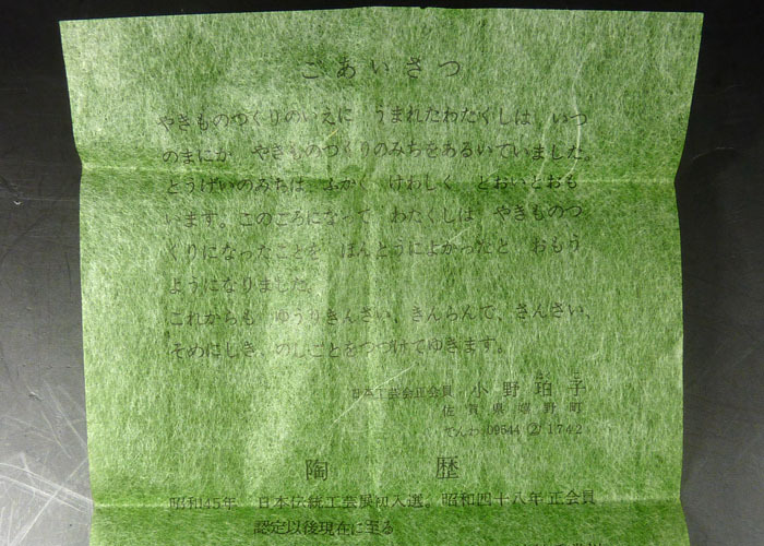 | 概要 | 小野珀子の釉裏金彩ぐいのみです。 |