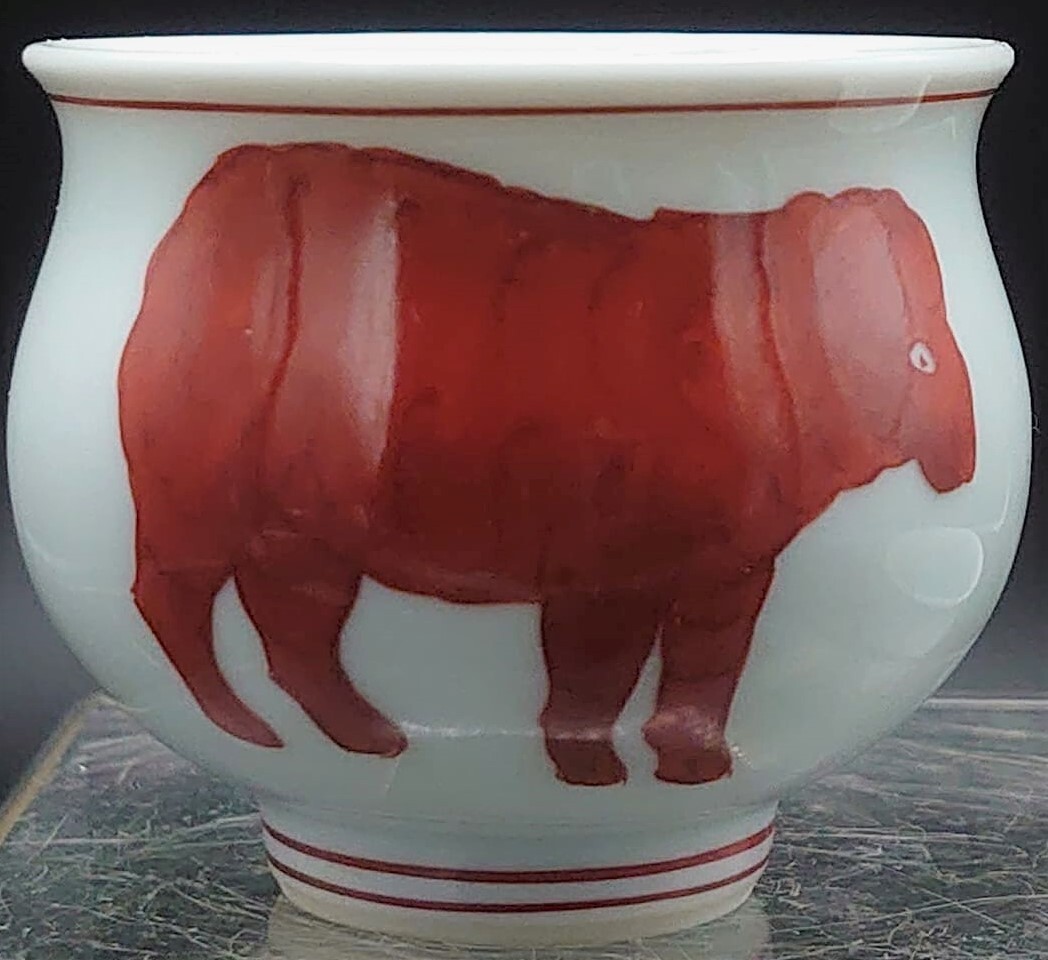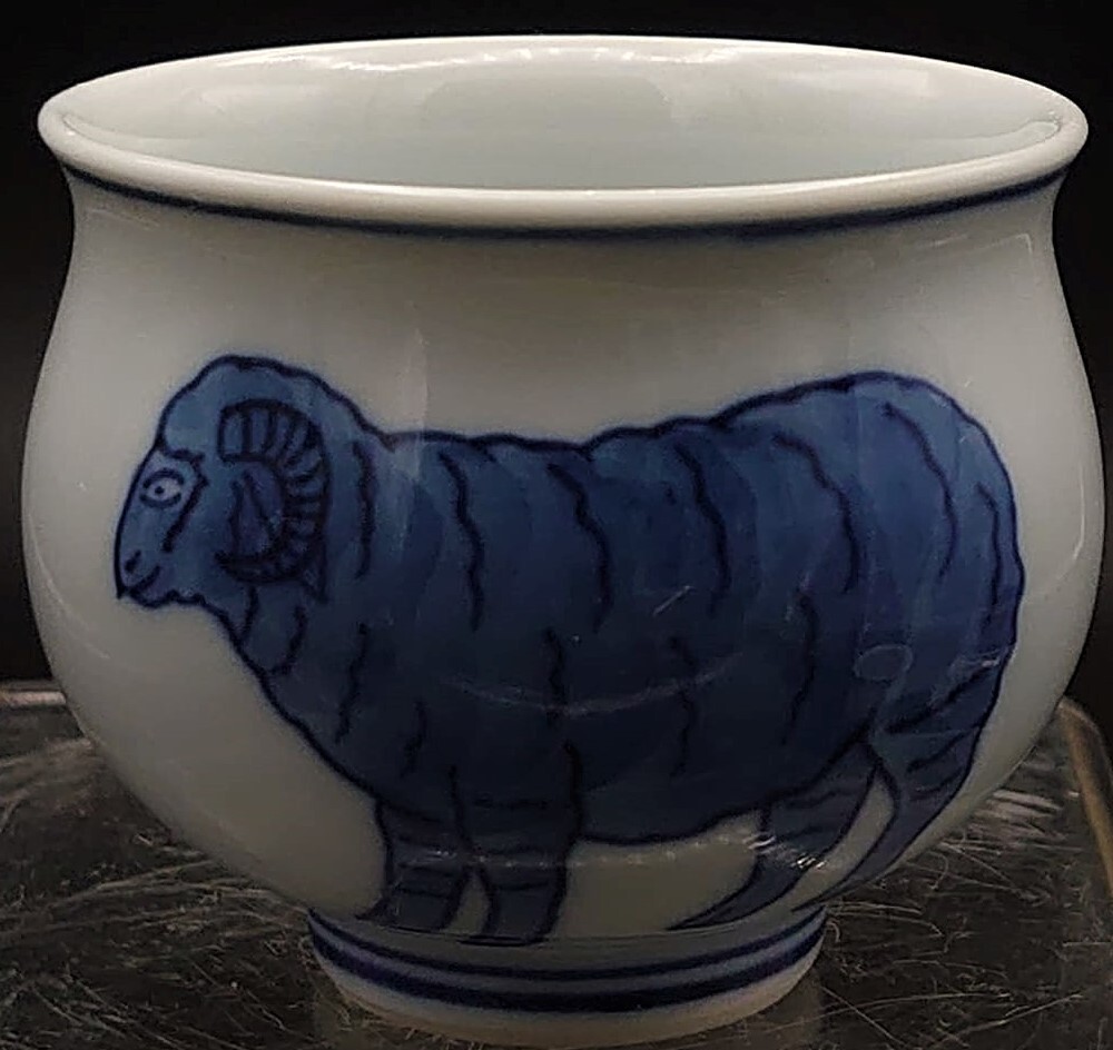 ☆文武堂☆ 源右衛門窯 紺朱十二支 共箱入り 干支 羊 ぐい飲み色違い二客