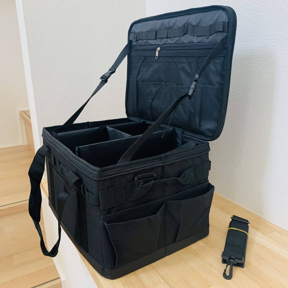 キャンプ用 超高品質 ブラック 多機能收納ケース 自立式大容量収納バッグ 厚くして衝突を防ぐ アウトドア 野外登山 30x40x25cm