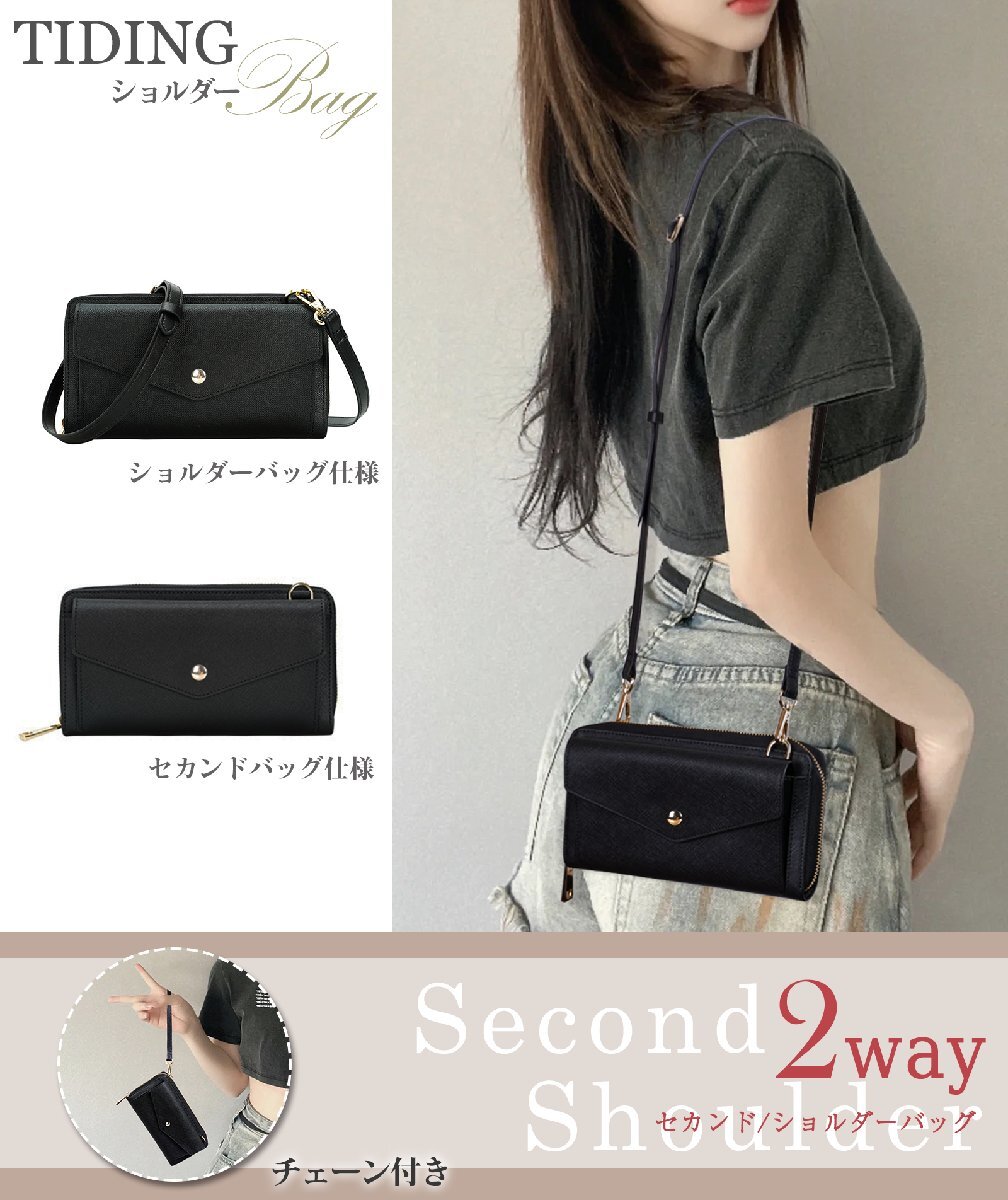 【セカンド&ショルダー2WAY鞄】 着脱可能ショルダー・手持ち計二本ストラップあり、 肩掛け・斜め掛けミニショルダーバッグかクラッチバッグとして使える。 色んなコーデとマッチする軽量黒系鞄、 日常生活、タウンユース、パーティー、冠婚葬祭も活躍。 (自社ブランド(tiding)です。他のブランドではございません。)