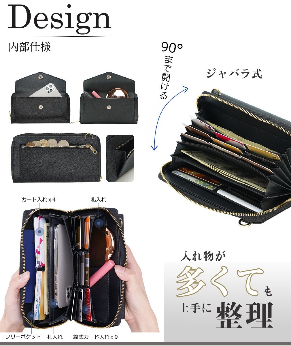 【普段外出の小物を収納可】 スマホ、化粧品、お札、カード、小銭など整理OK!