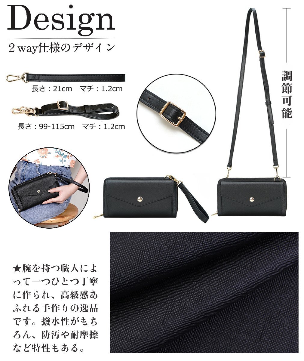 TIDING 小型 本革 ショルダーバッグ レディース 2WAY 長財布 スキミング防止 RFIDカード入れ 化粧ポーチ 牛革 黒 潮牛