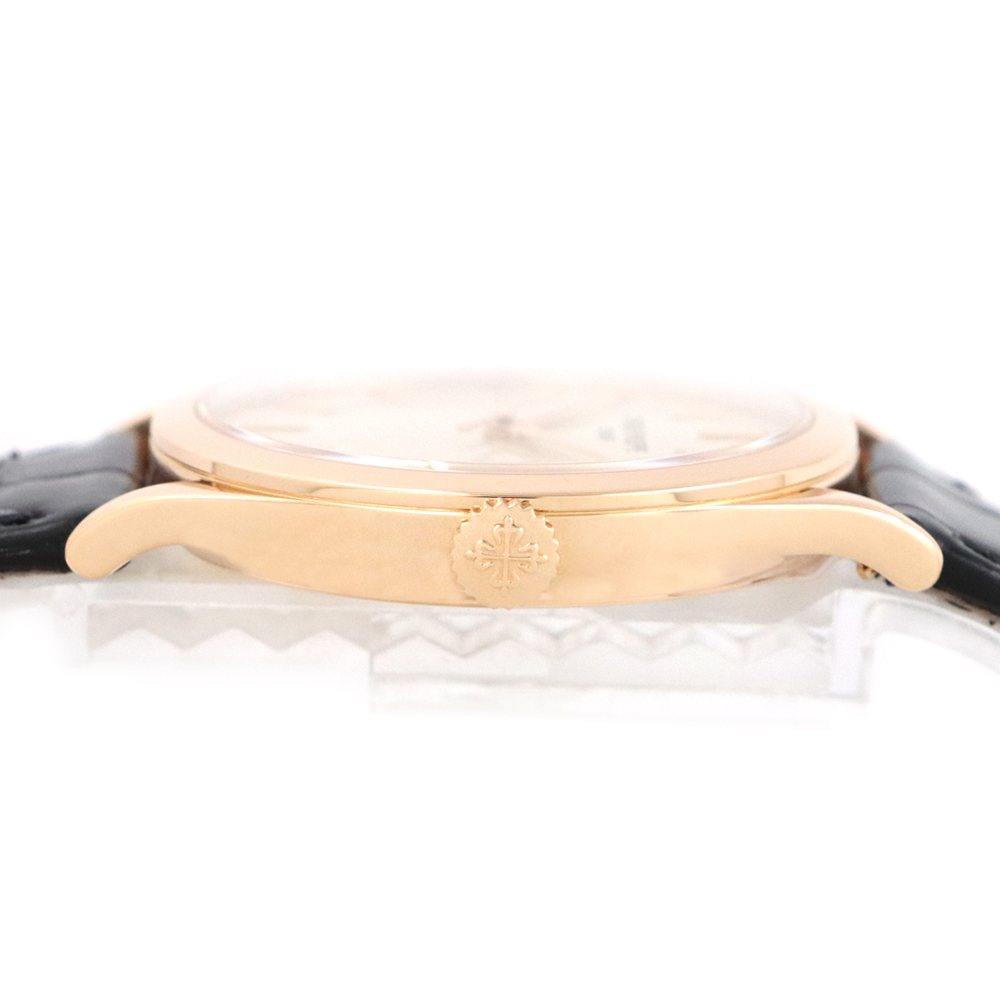 こちらはパテックフィリップ カラトラバ 5296R-010です。前モデルの5196と比較して、ケースサイズ37mmから38mm、手巻きから自動巻き、2針から3針、シースルーバック、デイト表示など実用性が進化されたローズゴールドモデル。時計全体がポリッシュ仕上げされており、ダイアルカラーとローズゴールドの組み合わせが、エレガントで高級感を味わえる雰囲気になっております。ムーブメントにはCal.324SCを搭載。裏蓋からはキャリバーの動きを心ゆくまで堪能できるでしょう。パテックフィリップを象徴するカラトラバはいつの時代にも色褪せる事の無い魅力をお客様の腕元で演出してくれる事は間違いありません。