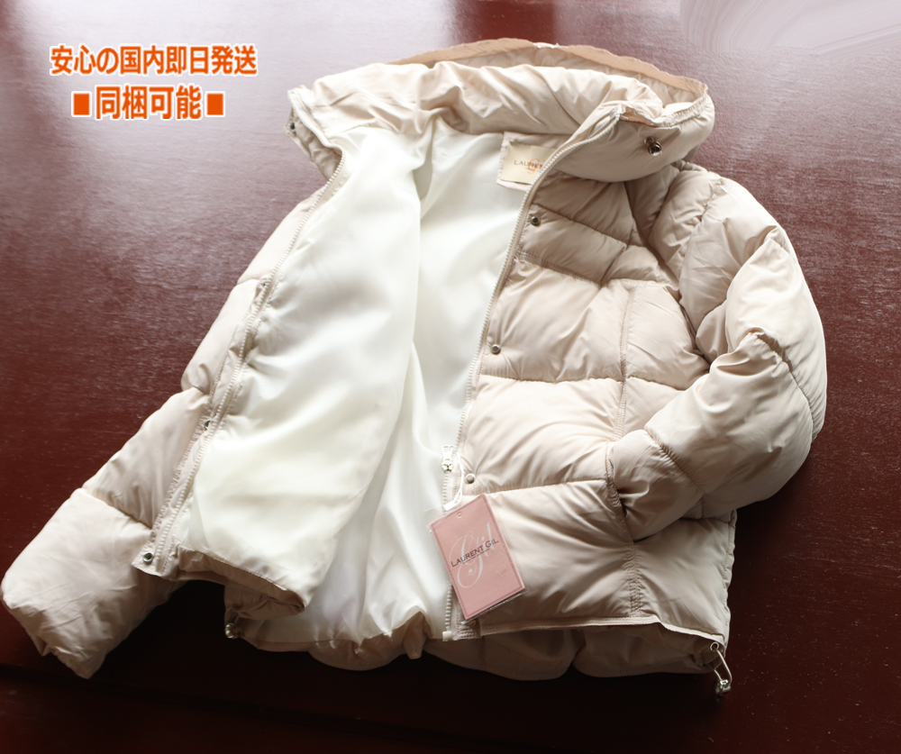 新品 完売■L.GIL 中綿 フェイクダウン ジャケット XL 白◆レディース 軽量 ふんわり ボリューム中綿 フードネック ショート丈コート 短丈