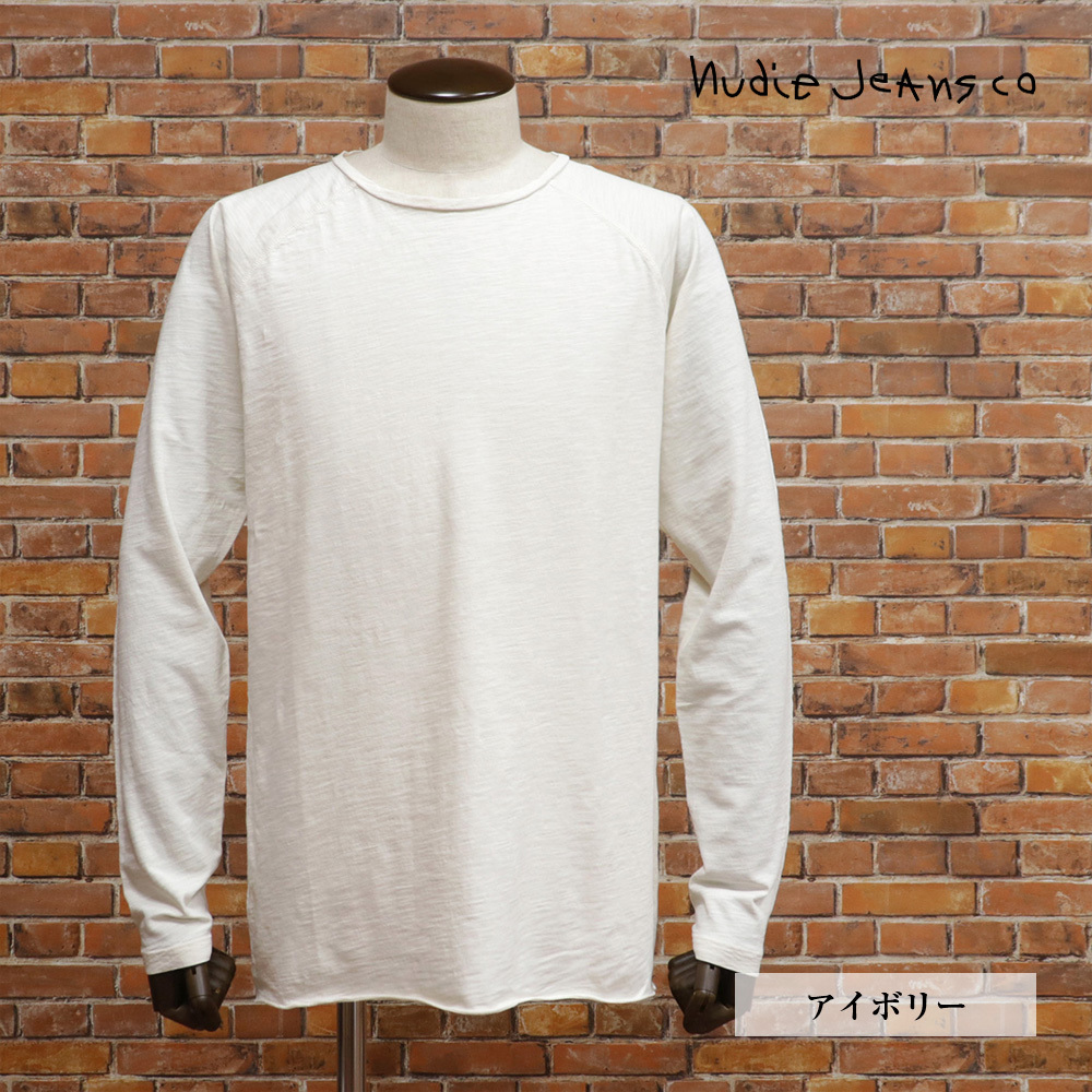 1円/Nudie Jeans/Mサイズ/訳 長袖Tシャツ OTTO RAW HEM クルーネック オーガニック ヌーディージーンズ 新品/アイボリー/me214/