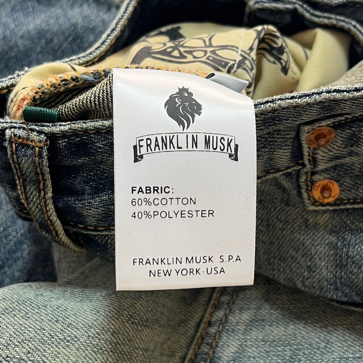 定番 定価4万 FRANKLIN MUSK・アメリカ・ニューヨーク発 デニムパンツ 上質 ソフト ヴィンテージ加工 刺繍 気品 スリム ジーンズ サイズ30