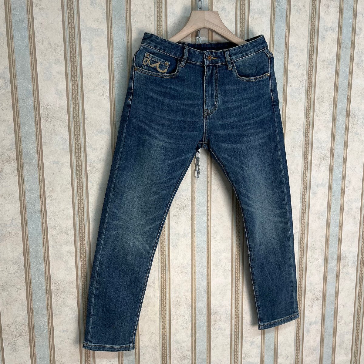 定番 定価4万 FRANKLIN MUSK・アメリカ・ニューヨーク発 デニムパンツ 上質 通気 ソフト ヴィンテージ加工 刺繍 気品 スリム ジーンズ 通勤 サイズ30