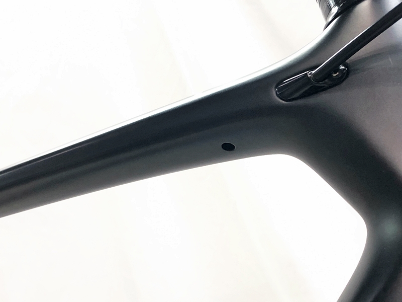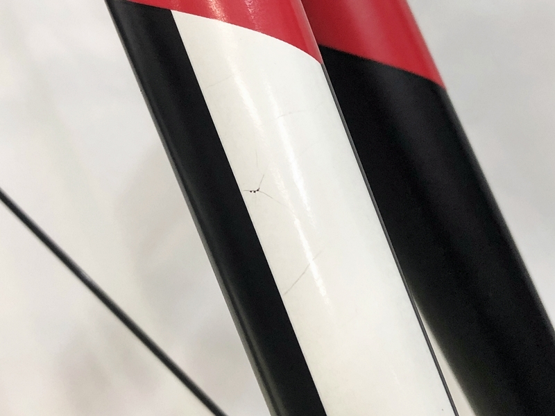 フレーム、その他外観:トップチューブ裏のグロメットが欠品しています。また、白い塗装部分にひび割れ、落ちない汚れがあります。
