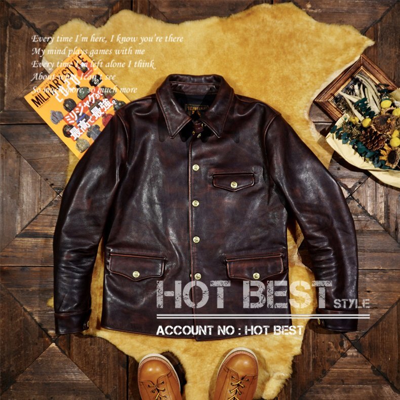 1.3mm 茶芯カウハイド 30's ワークコート レザージャケット メンズ 革ジャン カーコート ブレーキマン ベジタブルタンニンなめし 牛革 Y1406/M~4XLサイズ指定可