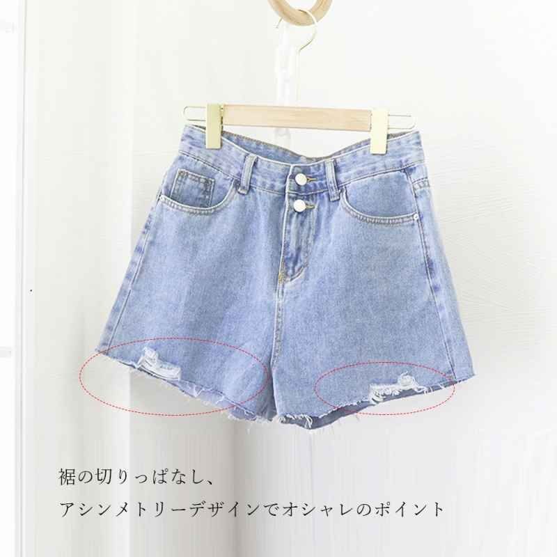 程よい短めの丈感でハイウエストとフロントボタンがオシャレなデニムショートパンツ