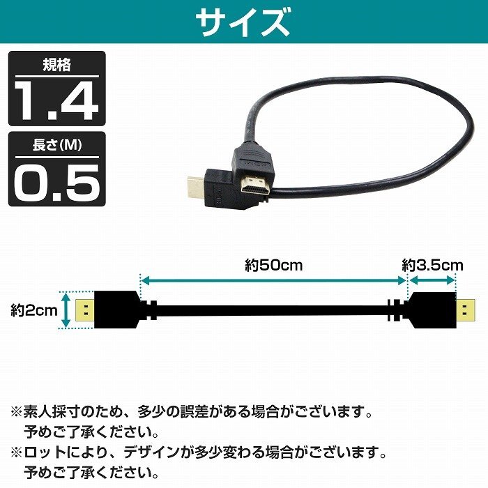 HDMIケーブル 0.5m/50cm 金メッキ ハイスピード 1.4規格 テレビ パソコン モニター 4K/3D映像/フルHD/フルハイビジョン/全対応