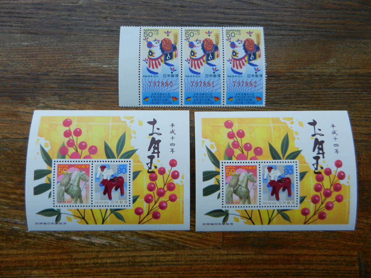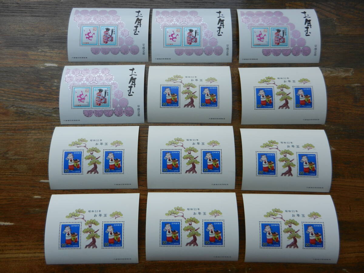 年賀切手 午年 セット: シート3枚+お年玉小型シート19枚+ブロック1枚 1954年 (昭和29年) ~ 2014年 (平成26年)  額面 1,542円