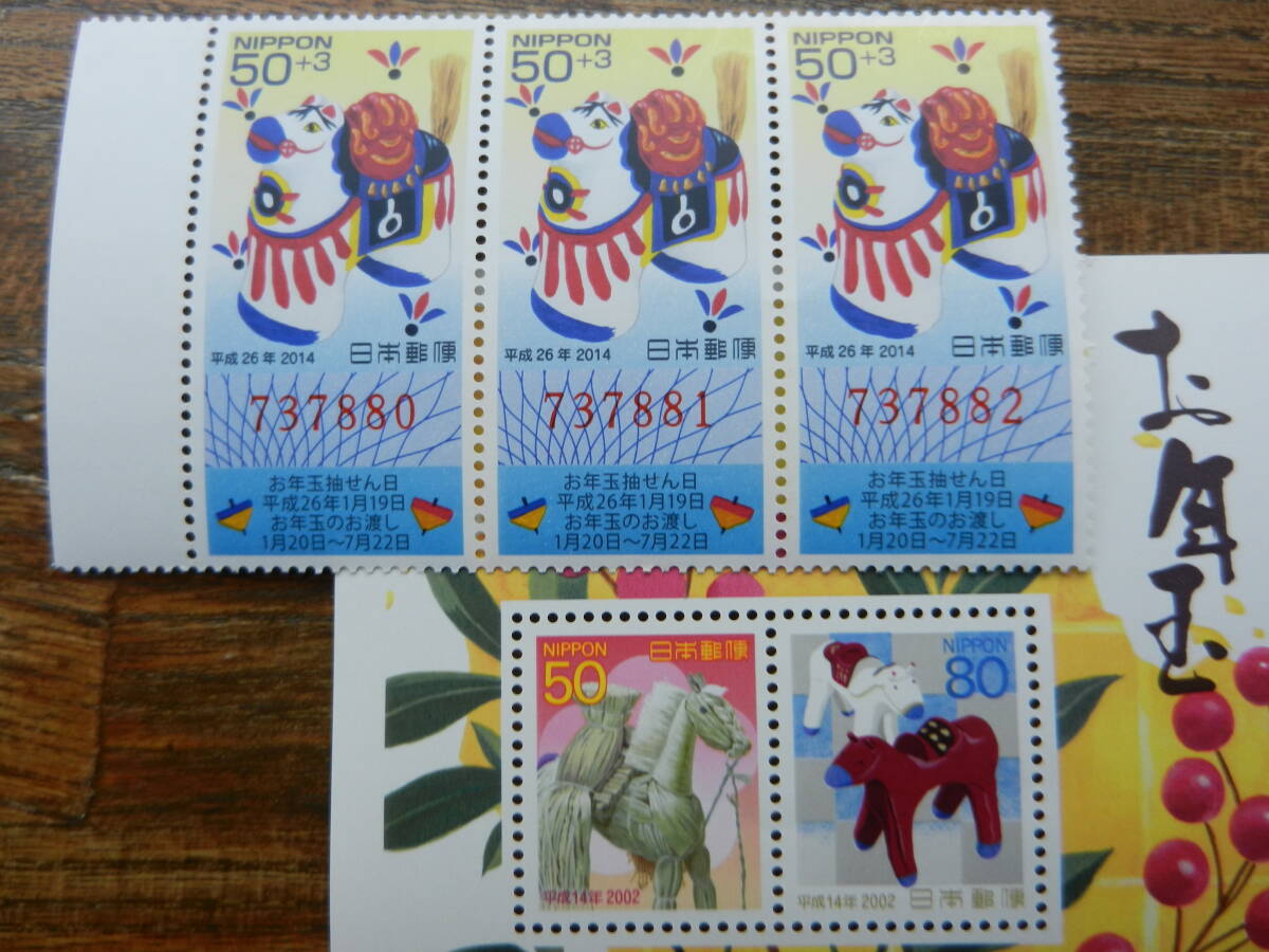 1954年 (昭和29年) から2014年 (平成26年)まで、12年ごとの午年の年賀切手を寄せ集めたセットです。