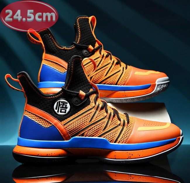 メンズ スニーカー 24.5cm オレンジ 靴 シューズ 防滑 バスケットシューズ 通勤 通学 旅行 【172】
