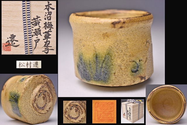 サイズは 58mmx55mmx高さ49mm です。 酒井甲夫 氏に 師事された 松村遷 氏のぐい呑です。 伝統に基づいた 黄瀬戸の ぐい呑です。 宅配便60サイズにて発送します。 他にも多数出品してます。同梱対応いたします。