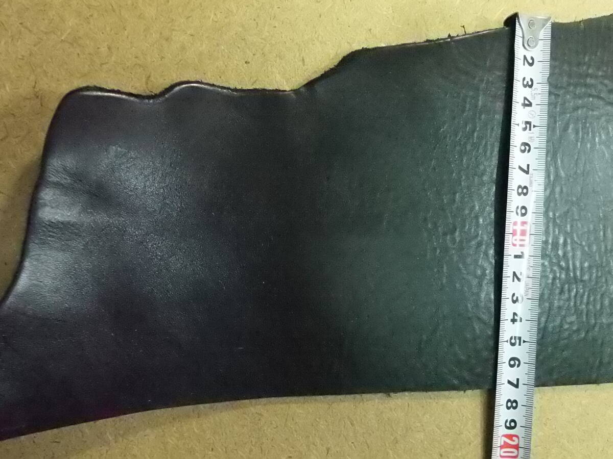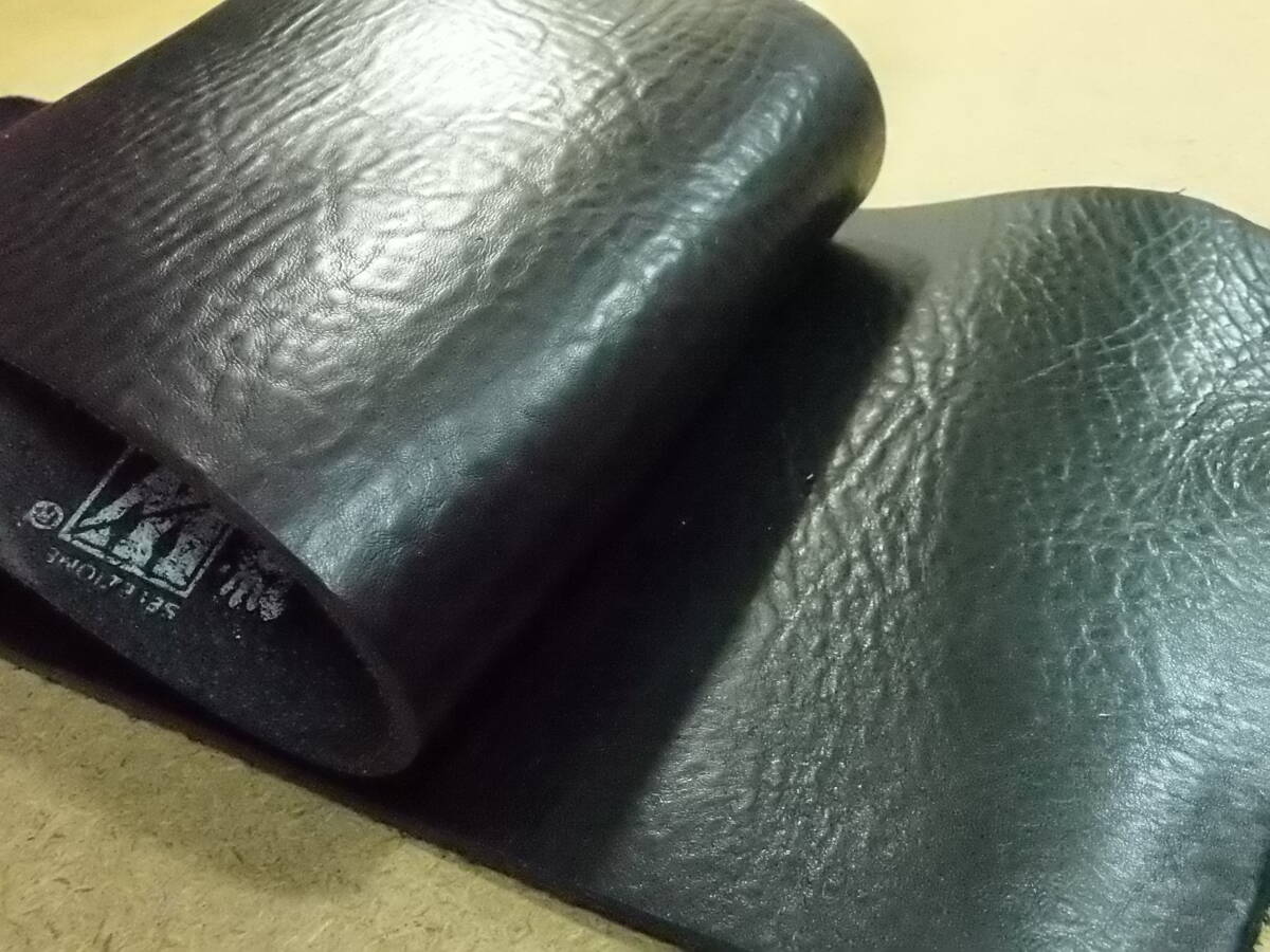 74 牛革はぎれ オイルヌメ 黒 インポート革 1枚 革中央で20cm×89cm程 3.8ミリ しっとり ベルト 革小物 タンニン