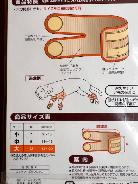 | * 商品説明 * ◆定価2948円の商品 シニア期~介護期の愛犬をやさしくケアするサポーター。 寝たきりの愛犬の床ずれ防止や、シニア期の愛犬の関節の保護、冷え対策に。 着脱が簡単な面ファスナー、フィット感も調整しやすい二股仕様です。 大サイズ 長さ14~20㎝ 幅12㎝ ※商品重量約134g 未使用新品ですが紙パッケージに色褪せがある場合があります。 処分品とご理解の上ノークレームノーリターンでお願いします。 | ||||||||